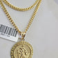 10k Gold Miami Cuban Necklace Saint Christopher Pendant Charm 3mm 18"-28" Chain