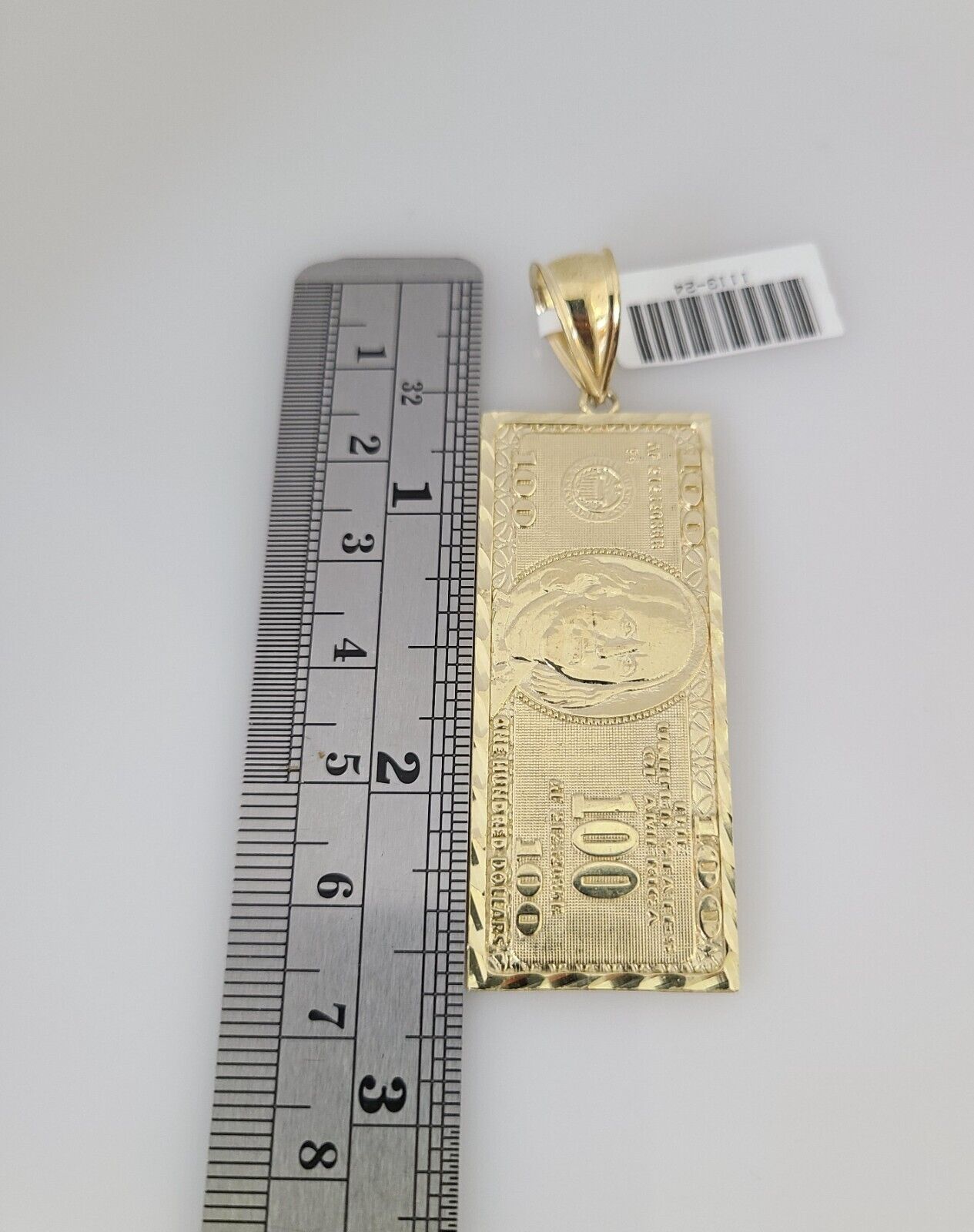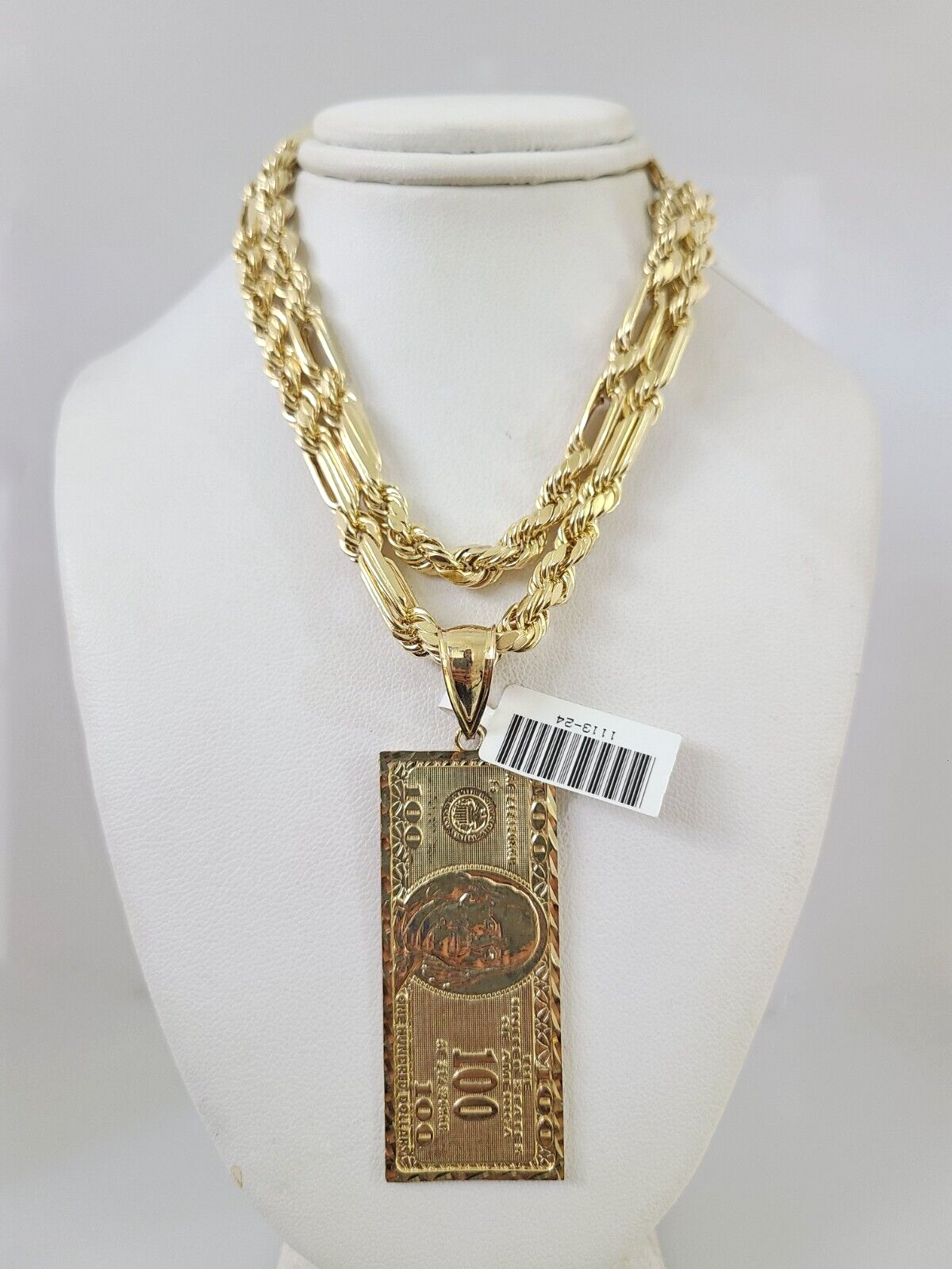10k Gold Milano Rope Chain 100 Dollar Bill Charm Pendant Set 20"-26'' Inches Necklace