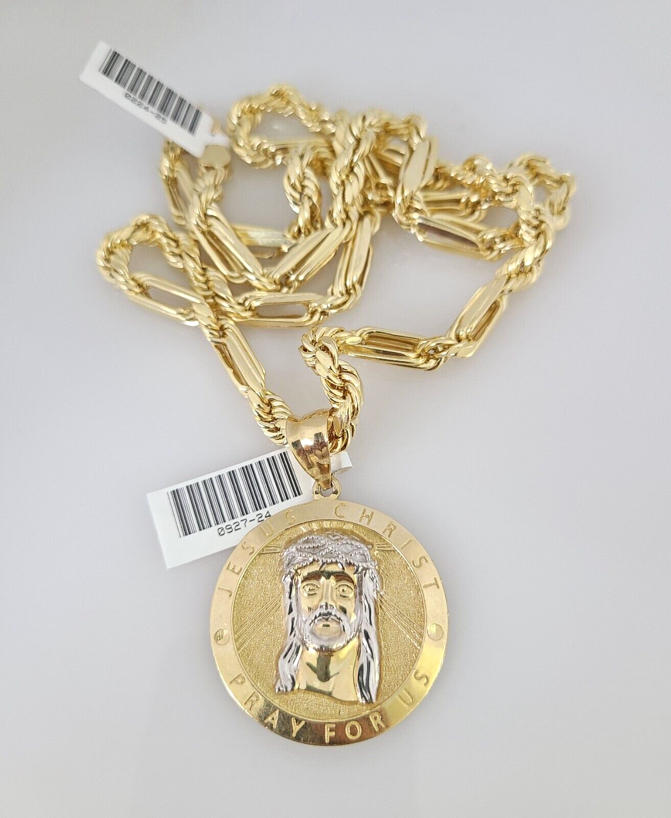 10k Gold Milano Rope Chain Jesus Christ Charm Pendant Set 20"-26'' Inches Necklace
