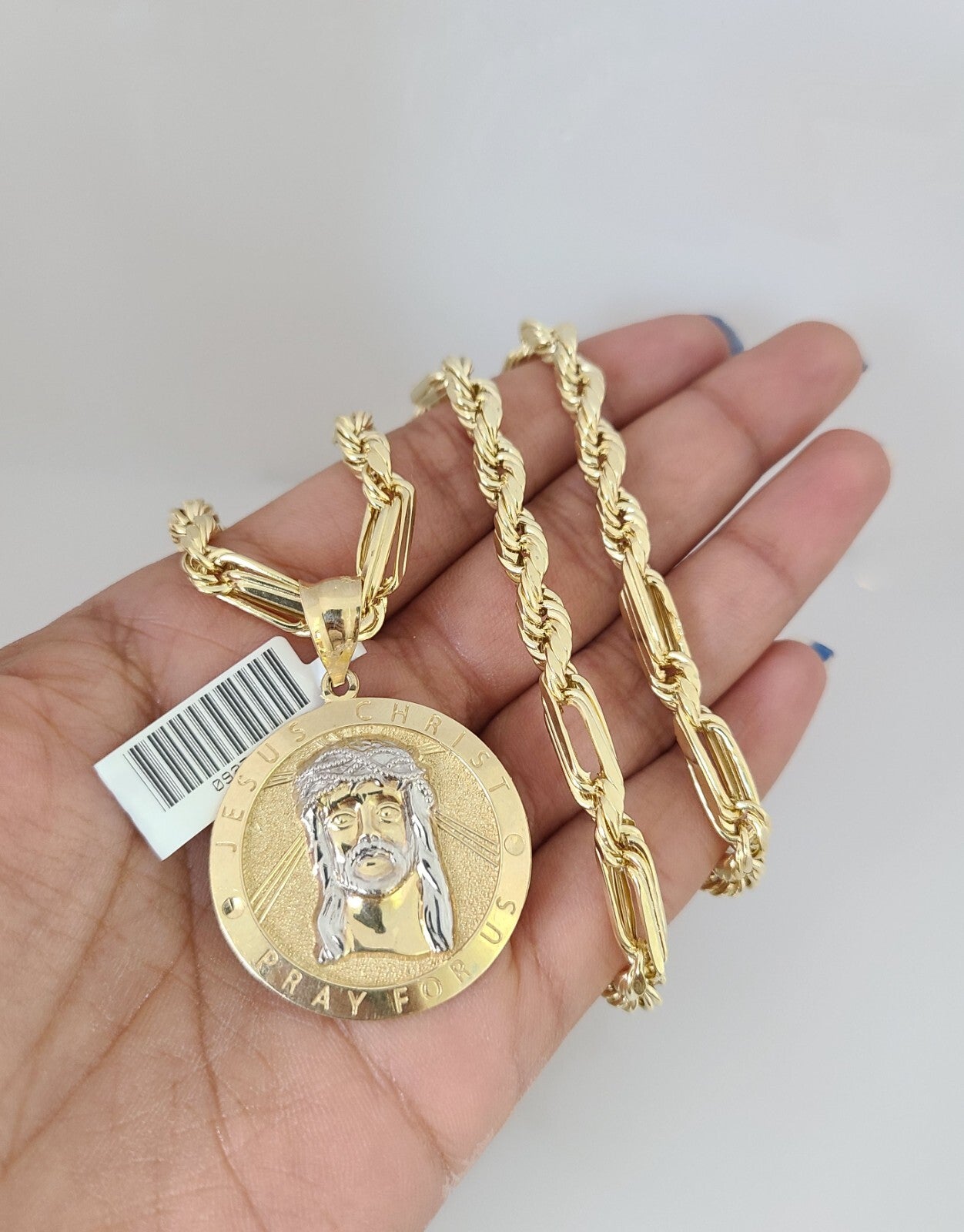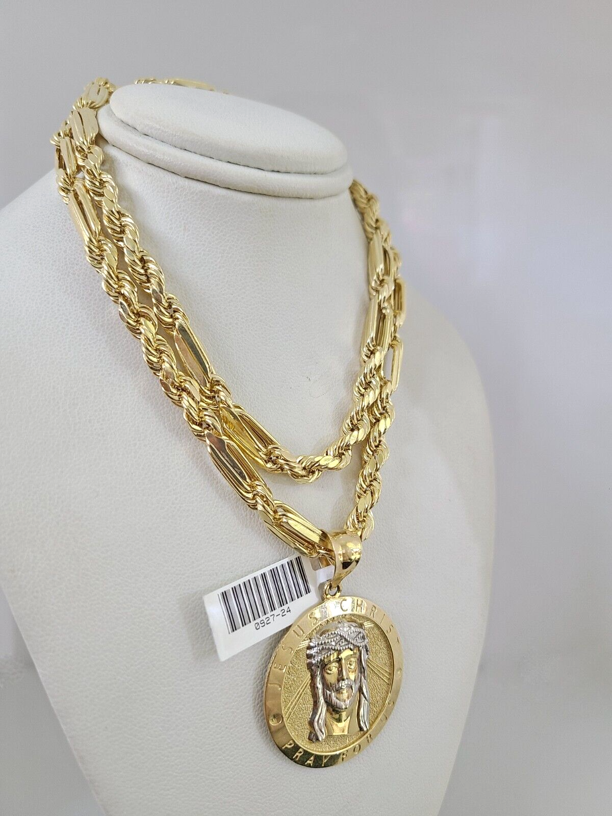 Genuine 10k Yellow Gold Milano Rope Chain 20-26 Inch 6mm Necklace with Jesus Christ Charm design as a SET. The Various length of the Chain are 20-26 Inches. If you are not happy with the way it looks or feels, we do offer 30 - Days FREE Return shipping. Contact us for more information.