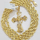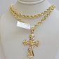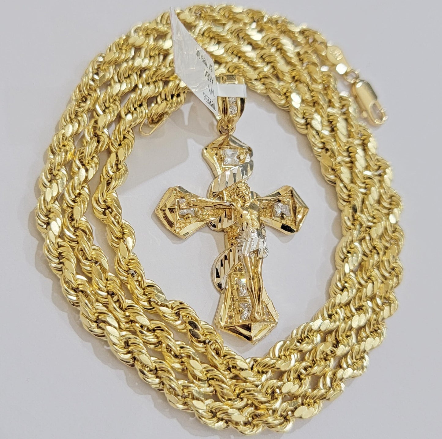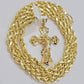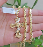 10k Gold Rope Chain Cross Charm Set Necklace 28" inch 5mm Jesus Pendant REAL 10K