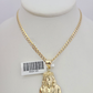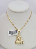 10k Gold Solid Cuban Curb Chain Jesus Head Pendant Set 3mm 18"-26" Necklace