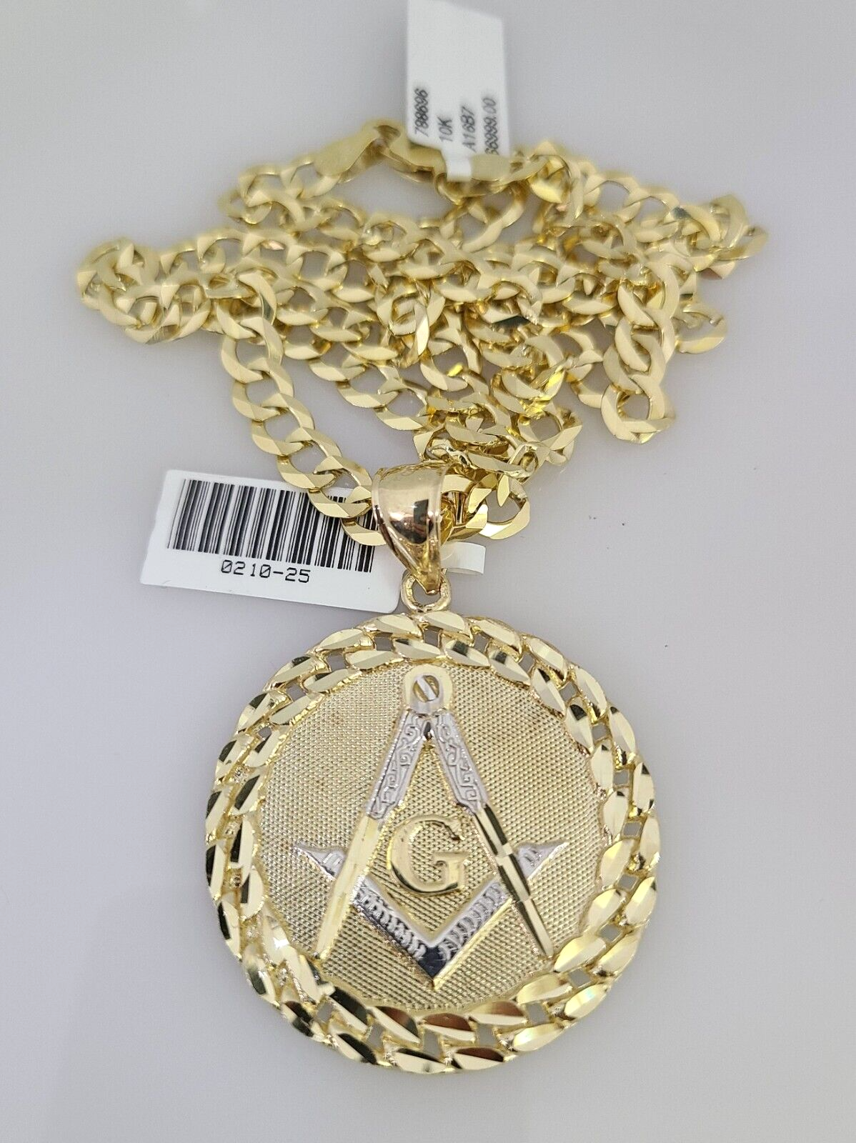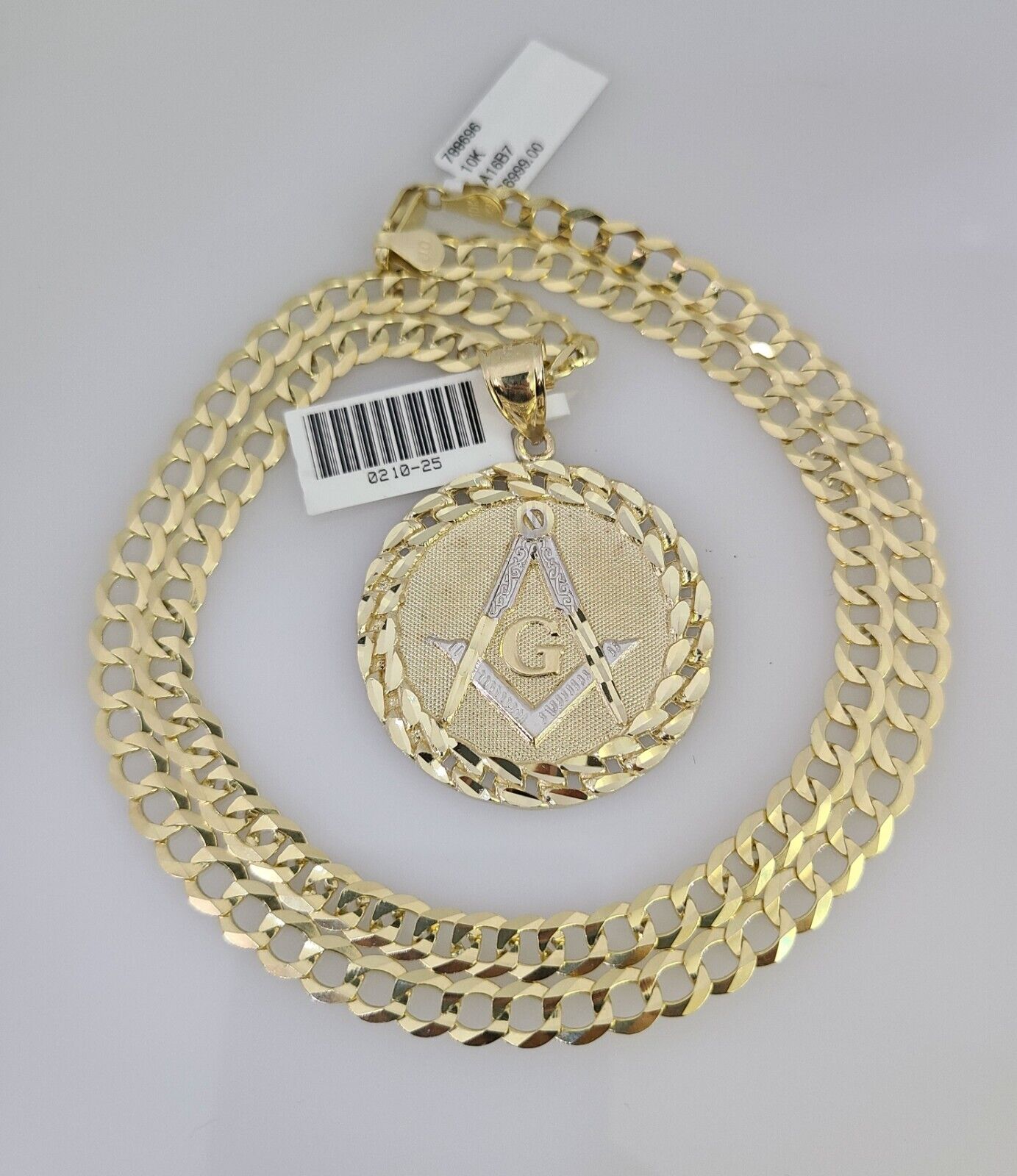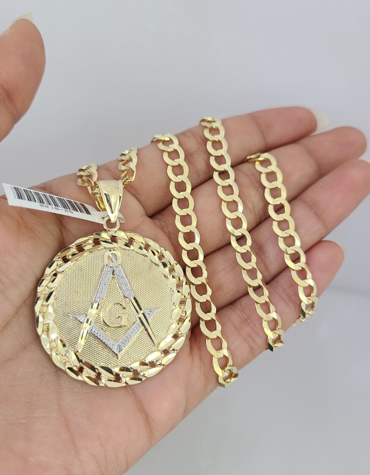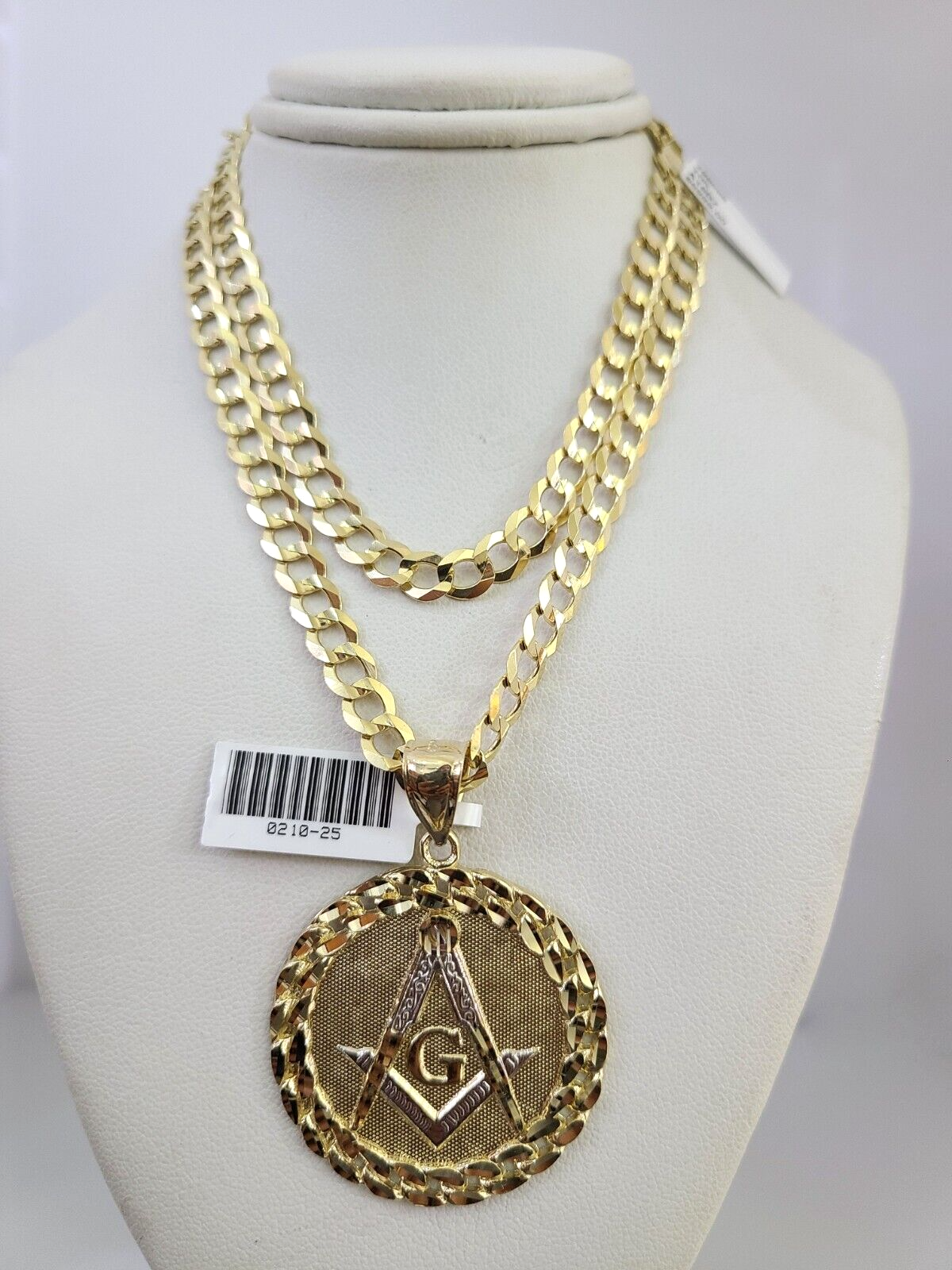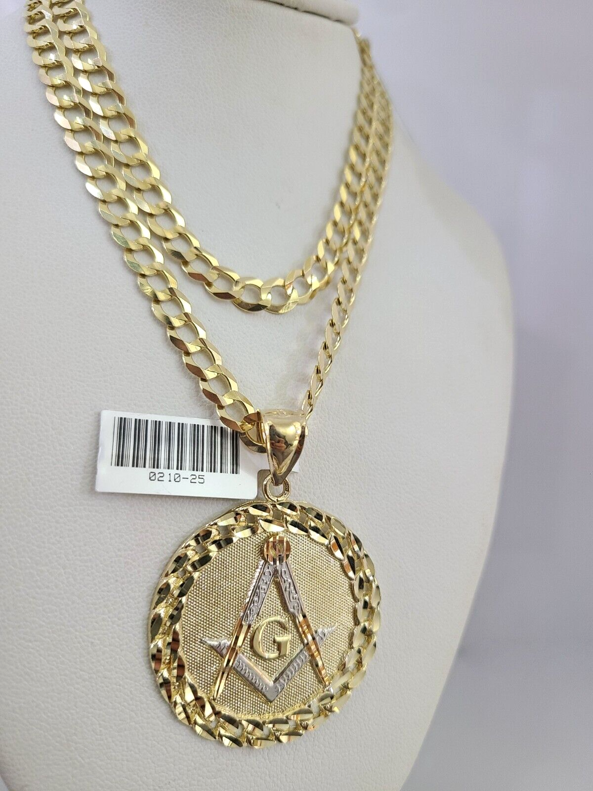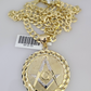 10k Gold Solid Cuban Curb Chain Necklace Masonic Pendant Set 6mm 20"-30" Charm