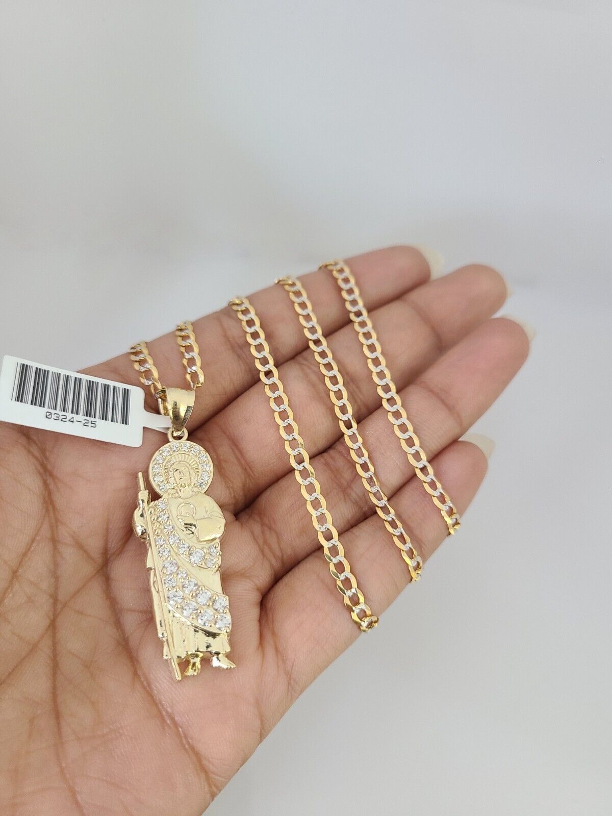 10k Gold Solid Cuban Curb Chain Saint Jude Pendant Set 3mm 18"-26" Necklace