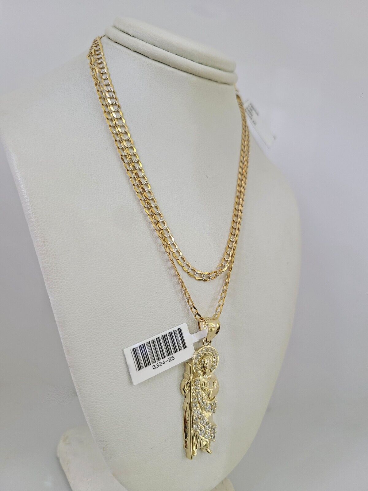 Genuine 10k Yellow Gold Solid Cuban Curb Link Chain Necklace 3mm Chain with Saint Jude Pendant. The Various lengths of the Chain are 18"-26". The Pendants are unique in design and considered durable too. If you are not happy with the way it looks or feels, we do offer 30 - Days FREE Return shipping. Contact us for more information.