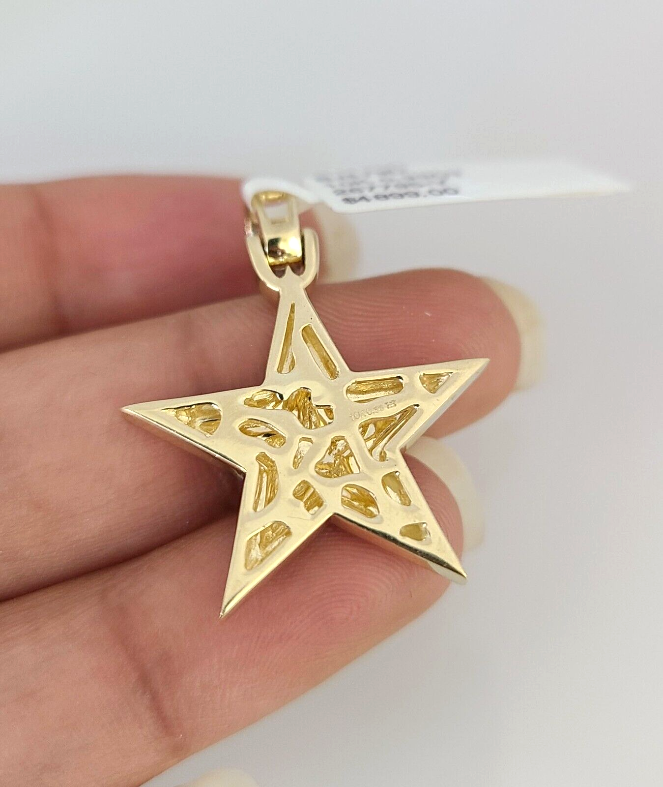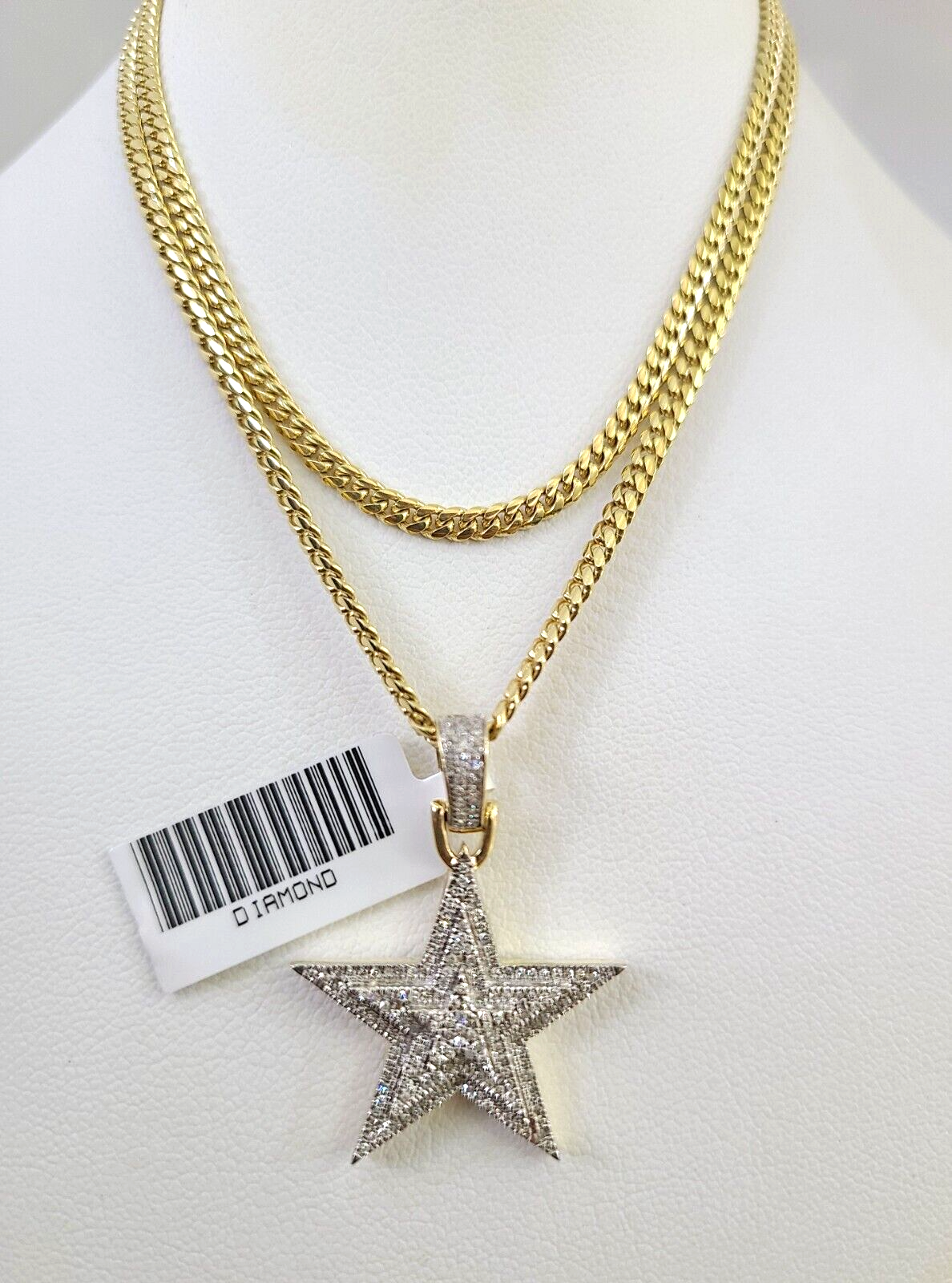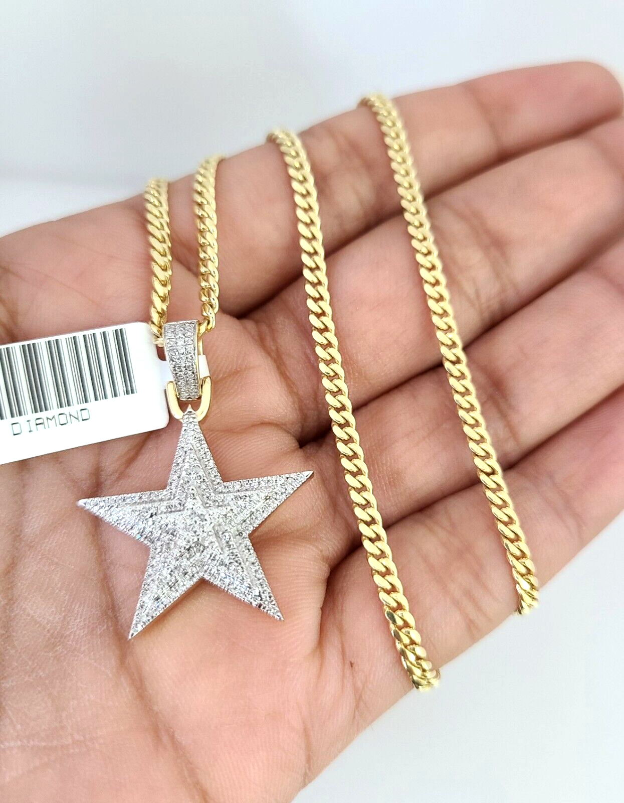 Genuine 10k Yellow Gold Miami Cuban Necklace 2.5mm Chain With Diamond Star Charm. The Various length of the Chain are 18"-24" . The pendants are unique in design and considered durable too. If you are not happy with the way it looks or feels, we do offer 30 - Days FREE Return shipping. Contact us for more information.