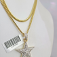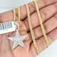 10k Gold Solid Miami Cuban Necklace Diamond Star Pendant 2.5mm 18"-24" Chain Set