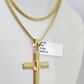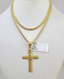 10k Gold Solid Miami Cuban Necklace Jesus Cross Pendant 2.5mm 18-24" Chain Set