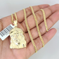 10kt Gold Miami Cuban Chain Jesus Head Charm Pendant 2.5mm 18-24 Inch Necklace SALE