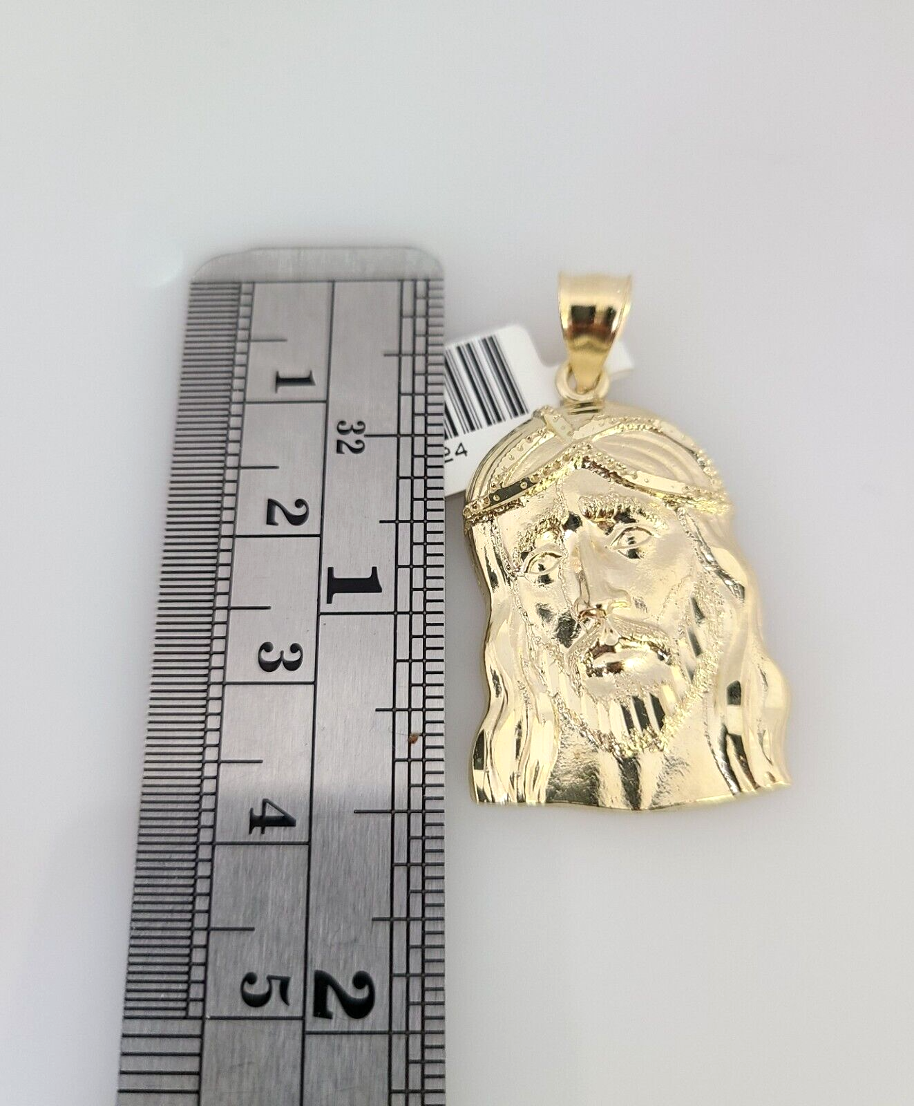 Genuine 10k Yellow Gold Miami Cuban Necklace 2.5mm Chain With Jesus Head Charm. The Various length of the Chain are 18"-24" . The pendants are unique in design and considered durable too. If you are not happy with the way it looks or feels, we do offer 30 - Days FREE Return shipping. Contact us for more information.
