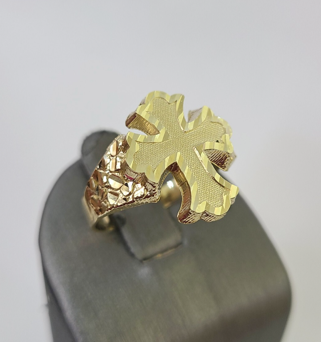 10k Jesus Cross Nugget Ring Casual Band Yellow Gold Genuine Brand New Religious Size 6 7 8 9 10 11 & 12