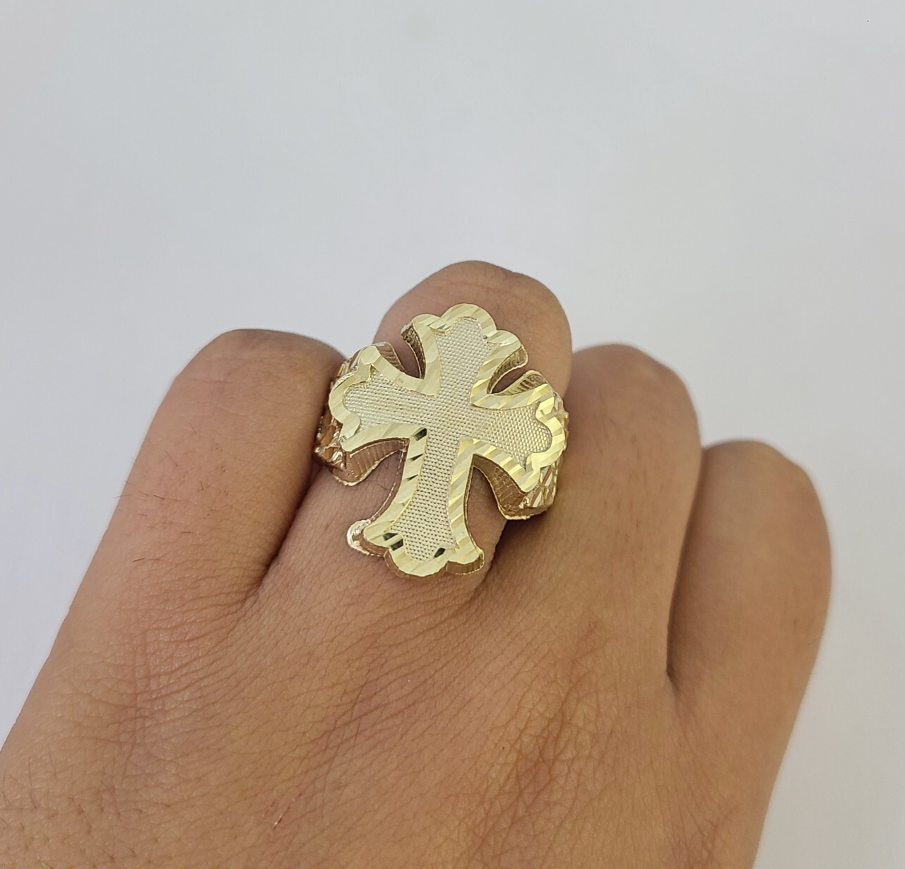10k Jesus Cross Nugget Ring Casual Band Yellow Gold Genuine Brand New Religious Size 6 7 8 9 10 11 & 12