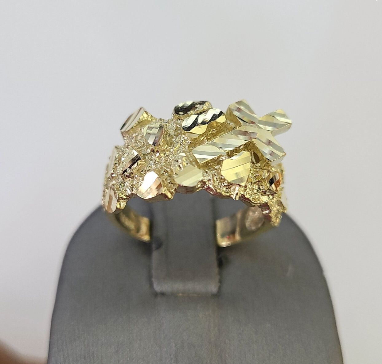 10k Nugget Jesus Cross Ring Casual Band Yellow Gold Genuine Brand New Religious Size 6 7 8 9 10 11 & 12