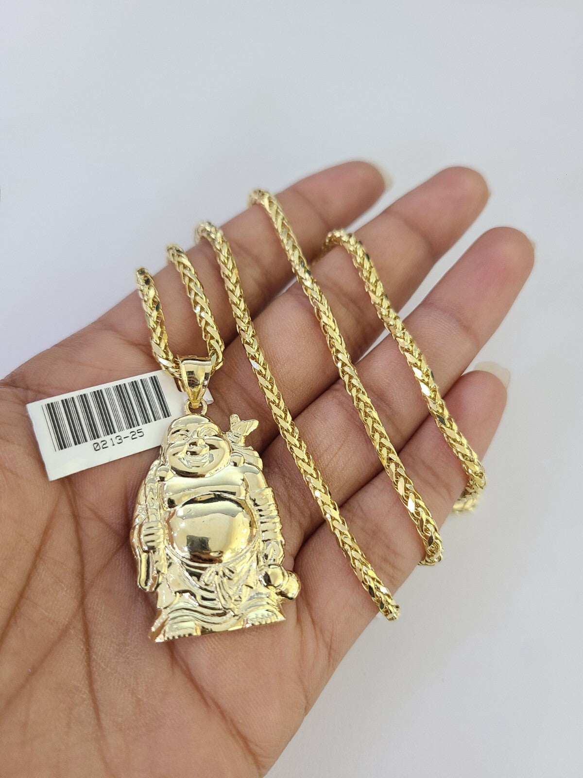 REAL 10k Palm Chain Laughing Buddha Pendant 3mm Necklace Set 18"-26"