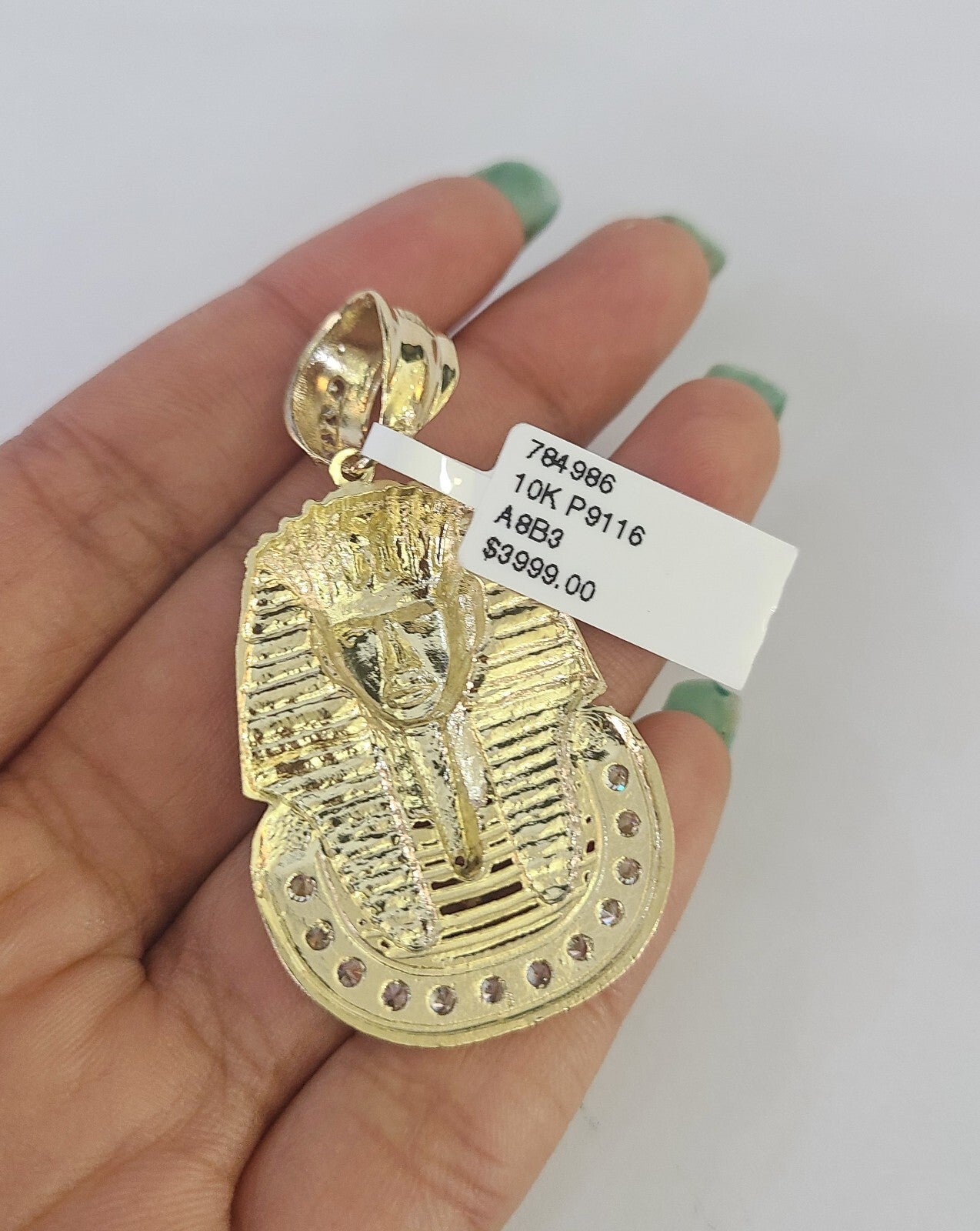 10k Yellow Gold Rope Chain Pharaoh Charm Pendant 18"-30'' Inch Necklace