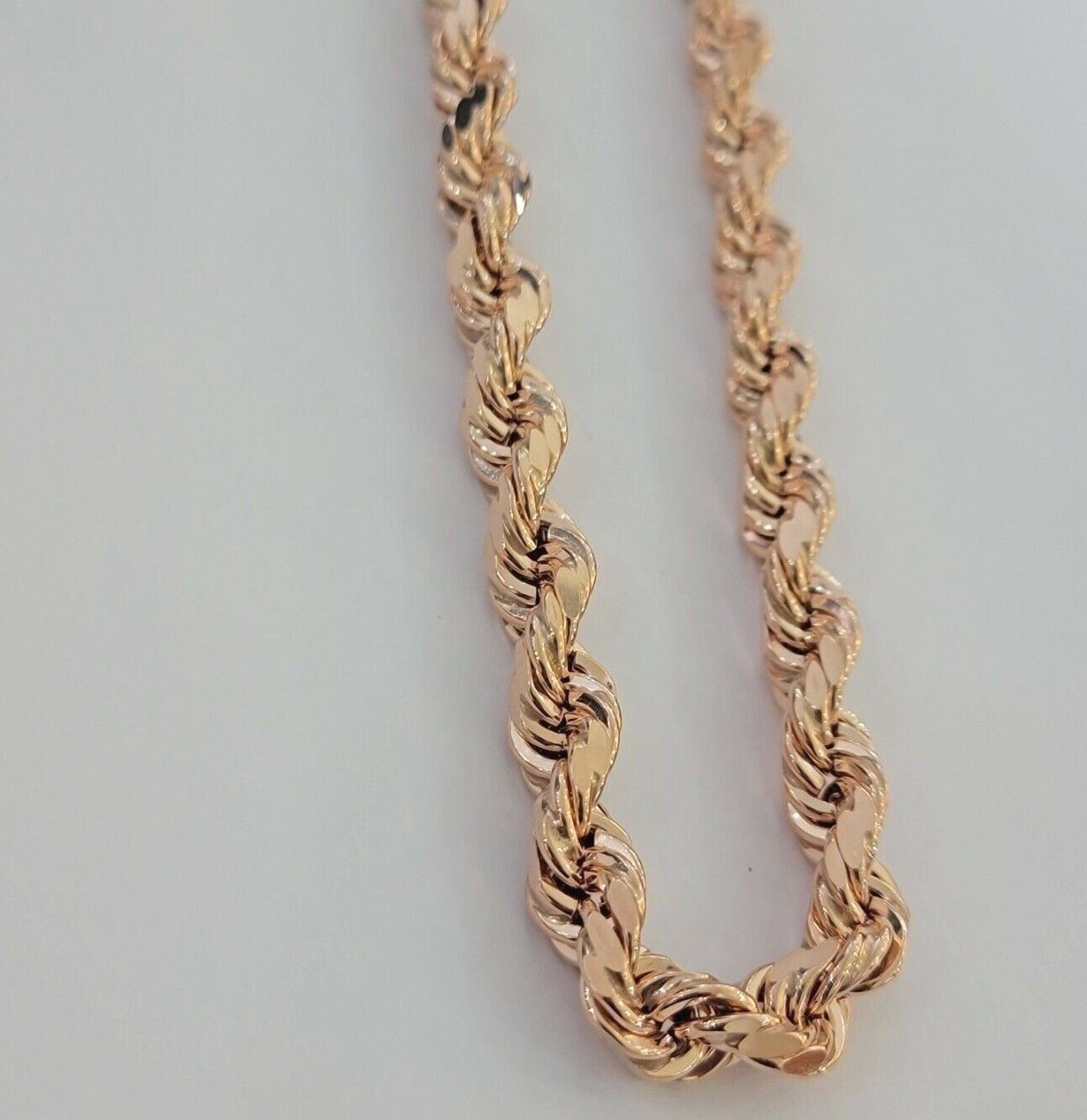 10k Rope Chain Solid Rose Gold Necklace 22 inch 7mm Diamond Cut Mens Heavy REAL