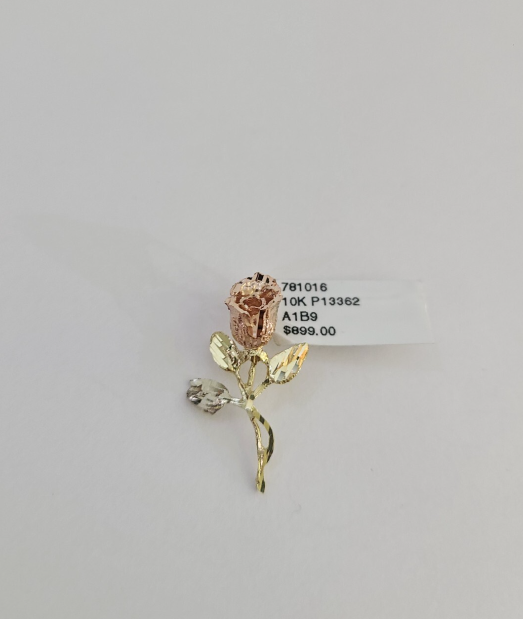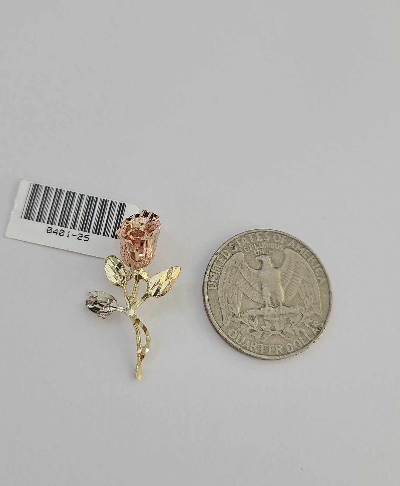 10k Trio Gold Rose Flower Charm Pendant Charm For Women