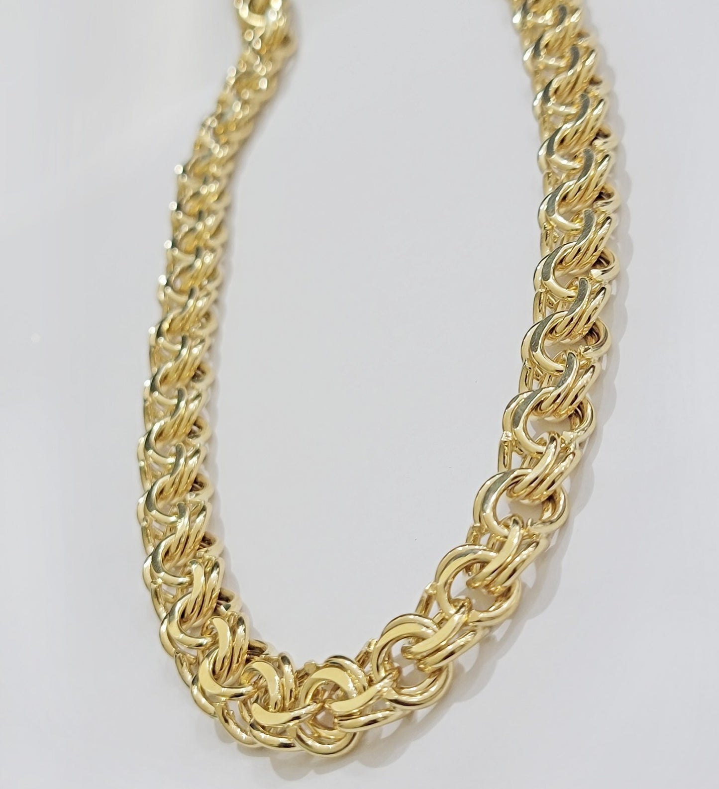 Real 10 K Yellow Gold ( Real , Not plated , Not filled ) Miami Cuban-Link 12 mm Chain For Men's . The length is 20-30 Inch Long (approx.) and Width of the Necklace is 12 mm( approx.) . The Clasp is box Lock with two other safety clasp in sides which is strong. The chain is beautiful designed with Cuban-Link style. It has light feel because of its weight. If you are not happy with the way it looks, we do offer FREE Return shipping.
