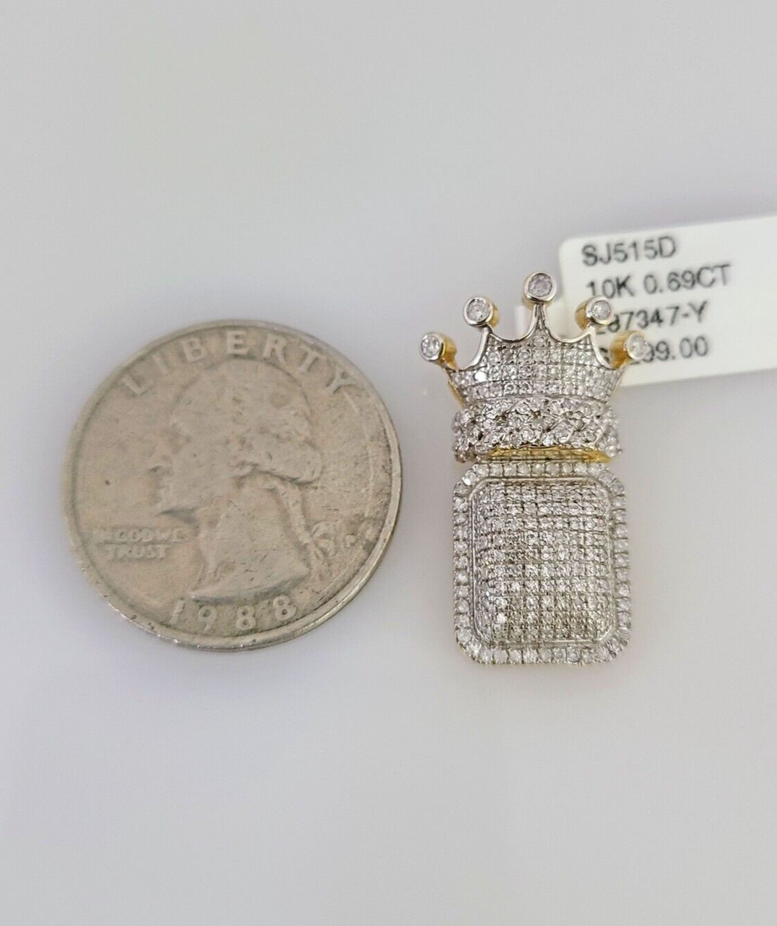 10k Yellow Gold Real (Not plated , Not filled ) Yellow Diamond Crown King charm pendant . The Length of the Pendant is 1-2 inches (approx. ) Long and 0.69CT diamond. The pendant can be worn with any chain. The pendant is considered durable. If you are not happy with the way it looks or feels, we do offer FREE Return shipping..