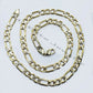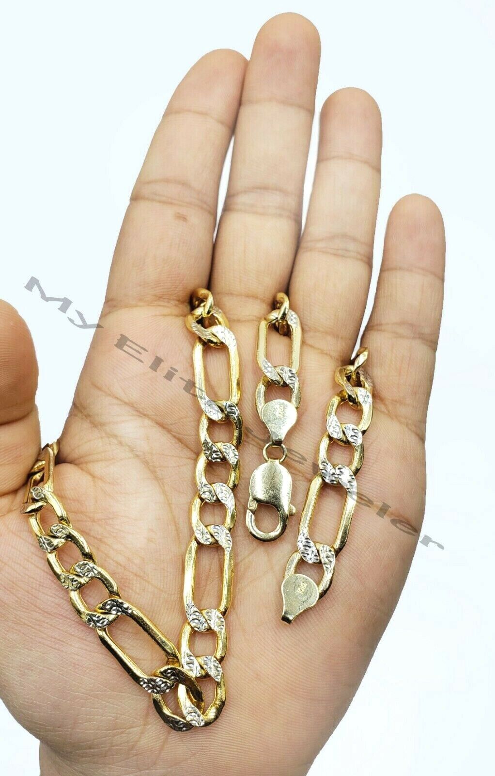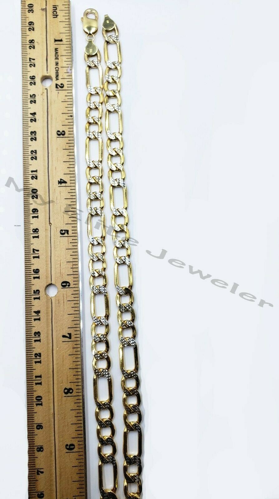 Genuine 10 k Yellow Gold ( Real , Not plated , Not filled ) Figaro Diamond Cut Chain For Men's. The Width of the necklace is 8.5 mm and 26 Inch Long . The Clasp is Lobster Safety Lock. The chain is Beautiful and can be worn with the pendant. If you are not happy with the way it looks or feels, we do offer 30 - Days FREE Return shipping.