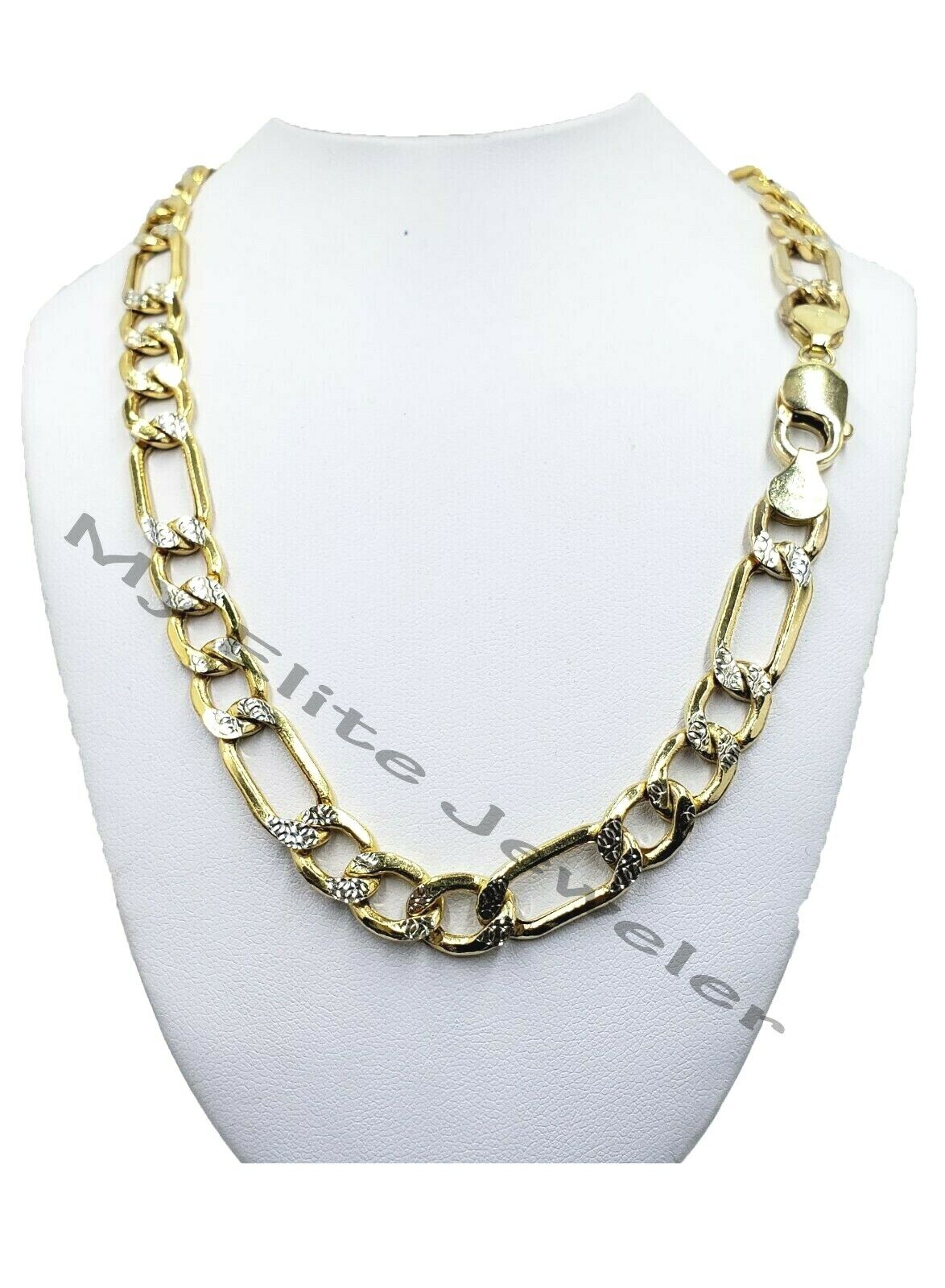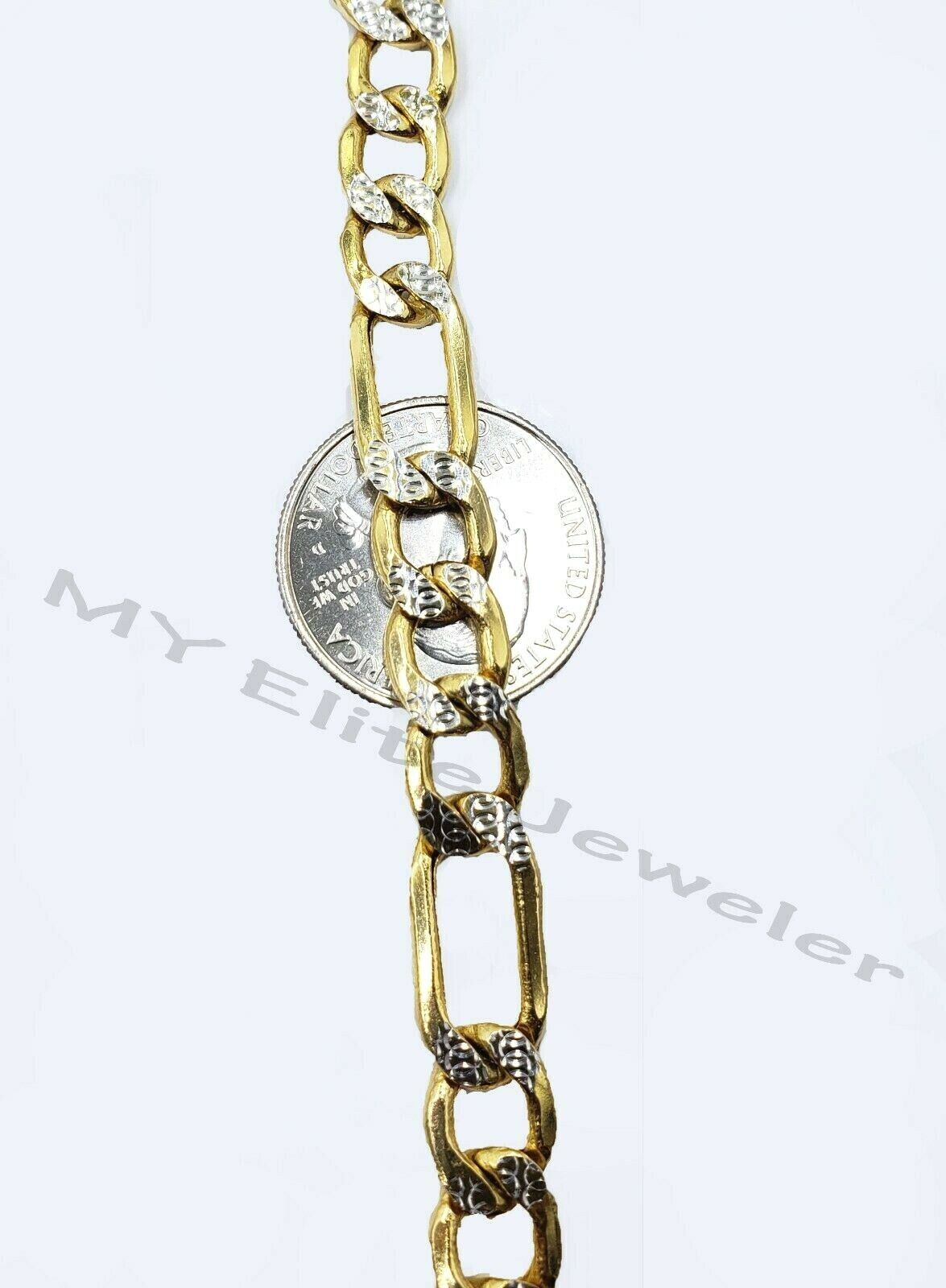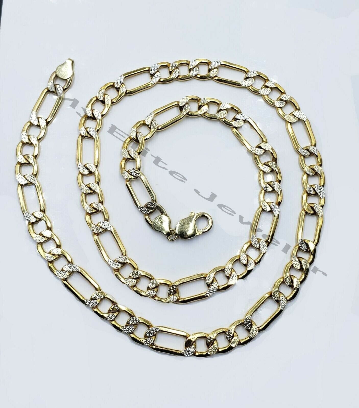 10k Yellow Gold Figaro Chain Necklace 26" Diamond Cut REAL Cuban Link FOR SALE