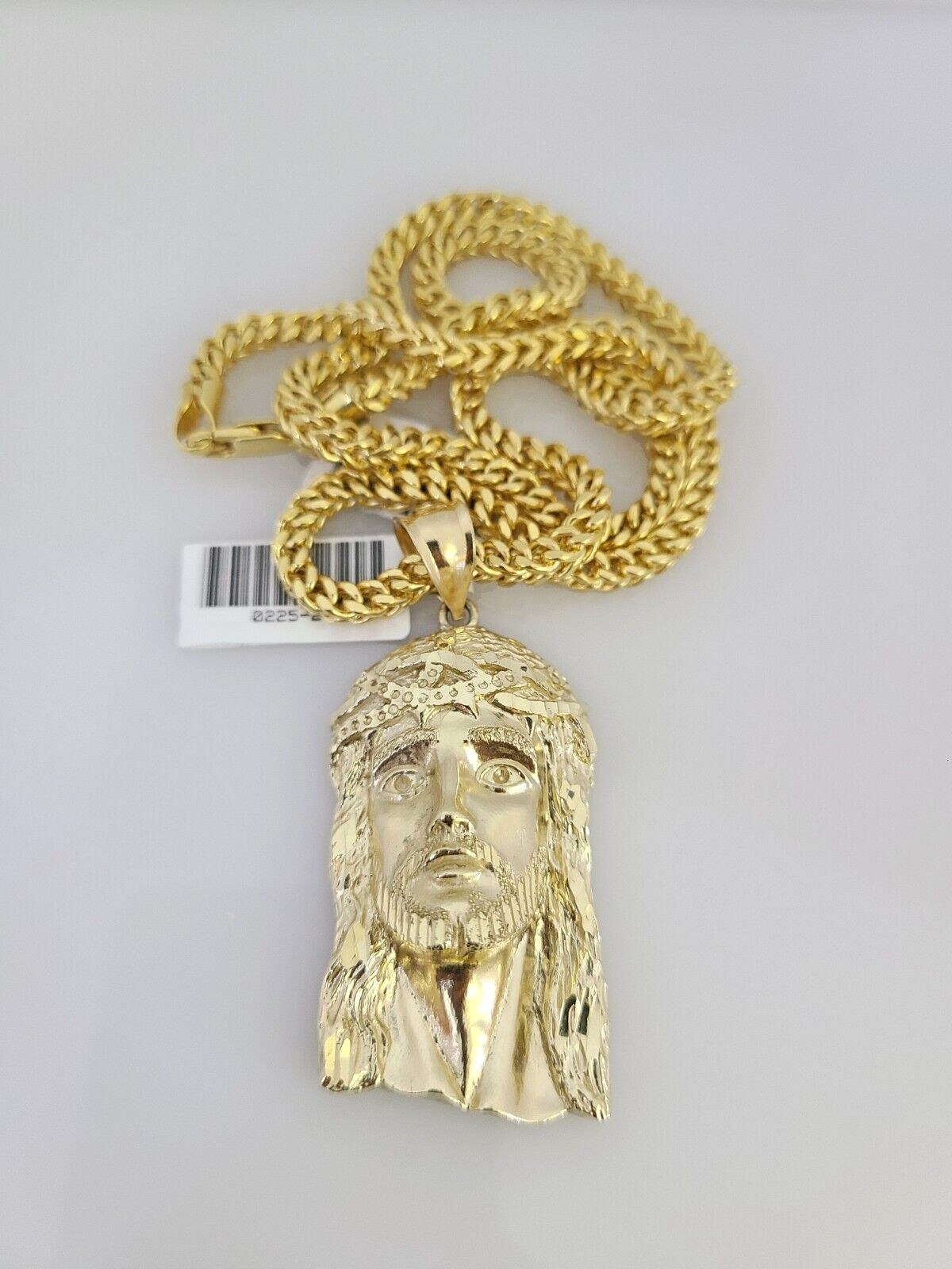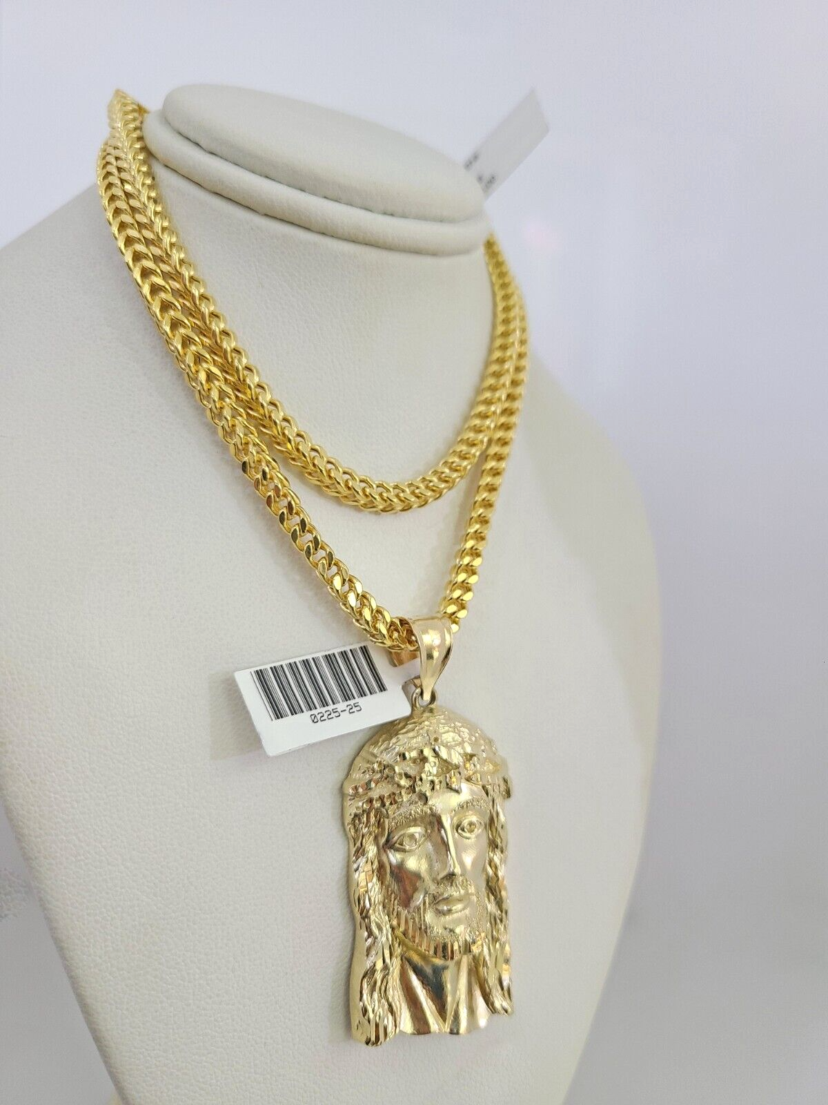 10k Yellow Gold Franco Chain Jesus Head Charm Pendant 4mm 18-28 Inches Necklace