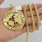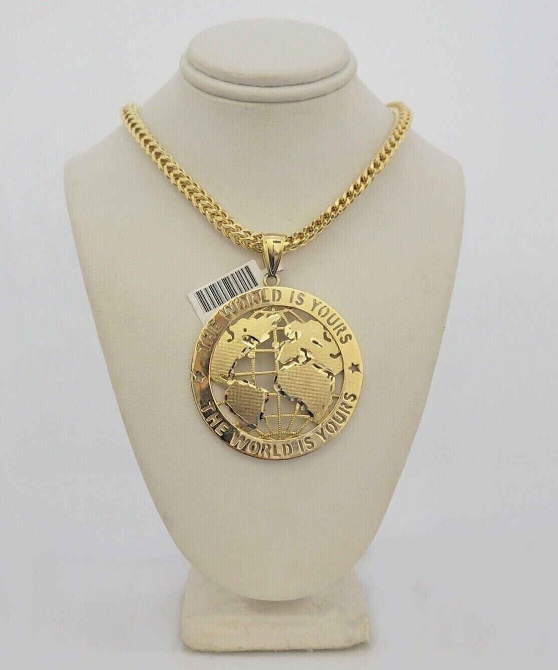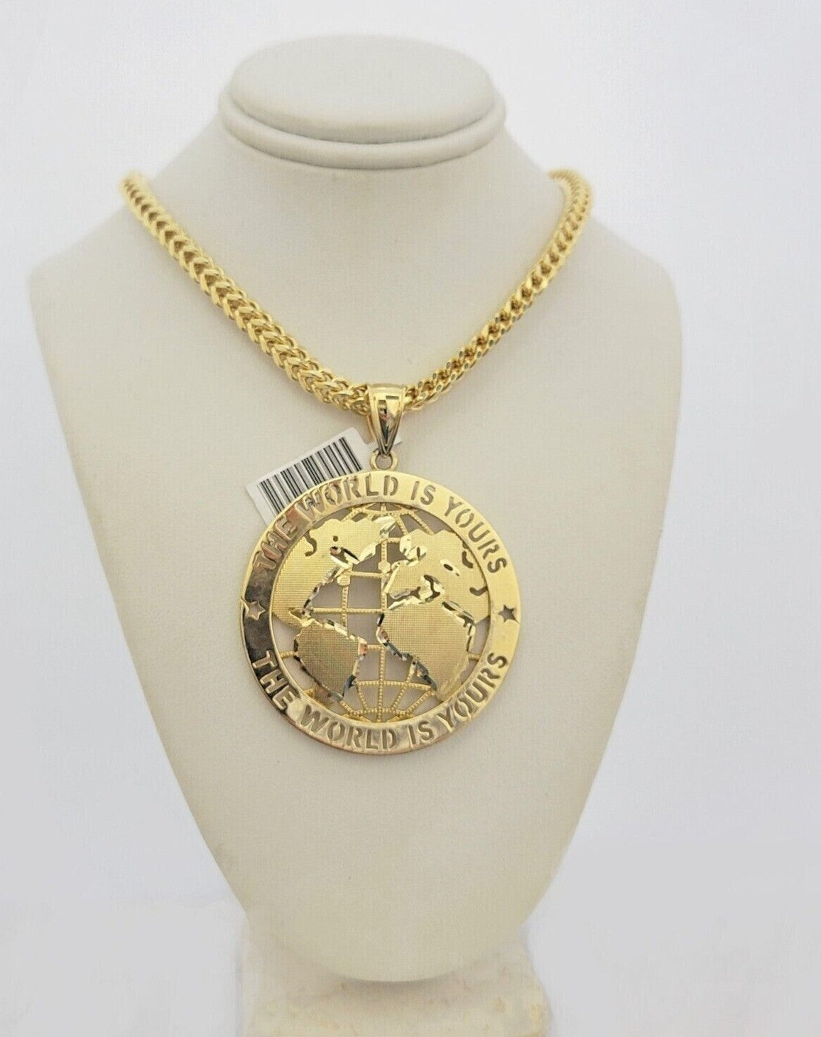 10k Yellow Gold Franco Chain Necklace World Map Charm Pendant 5mm 20-26'' Inches