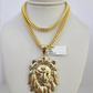 10k Yellow Gold Franco Chain Roaring Lion Charm Pendant 4mm 18-28 Inch Necklace