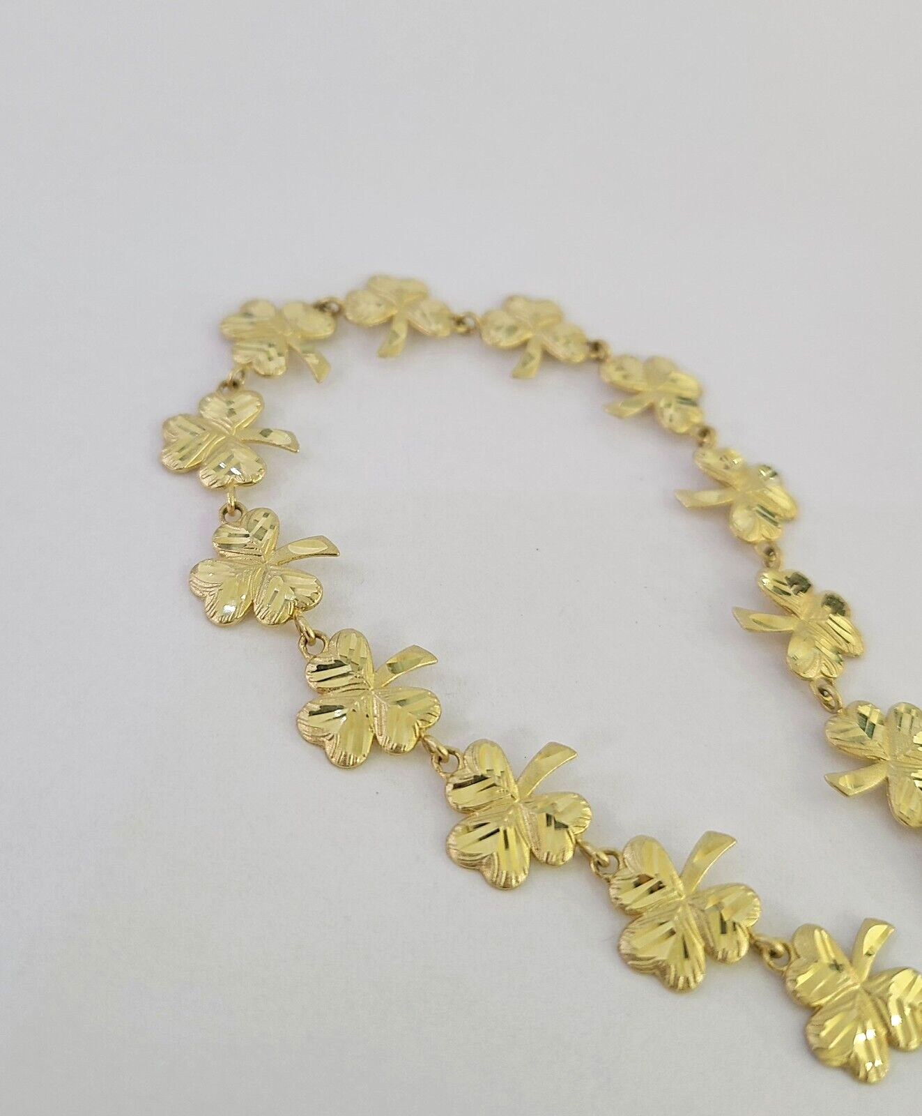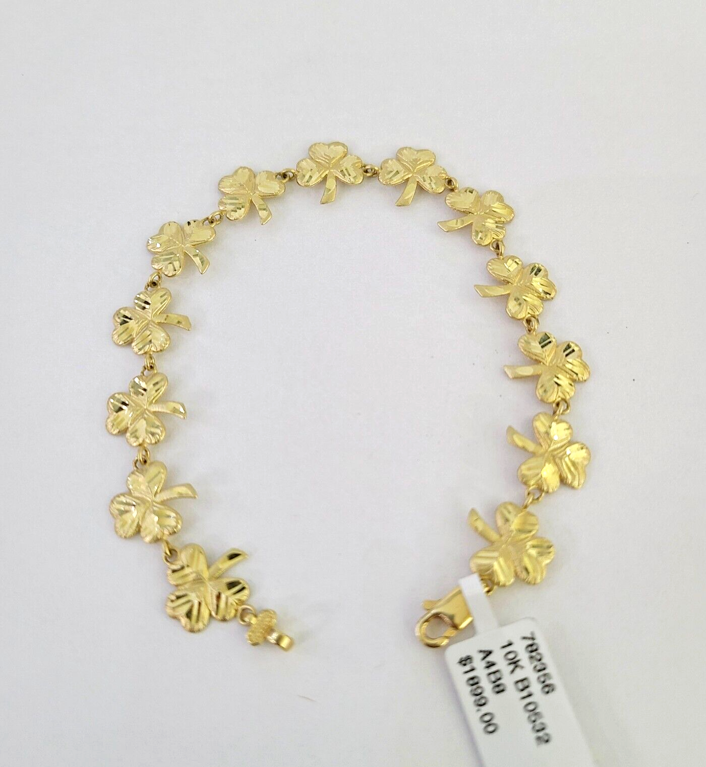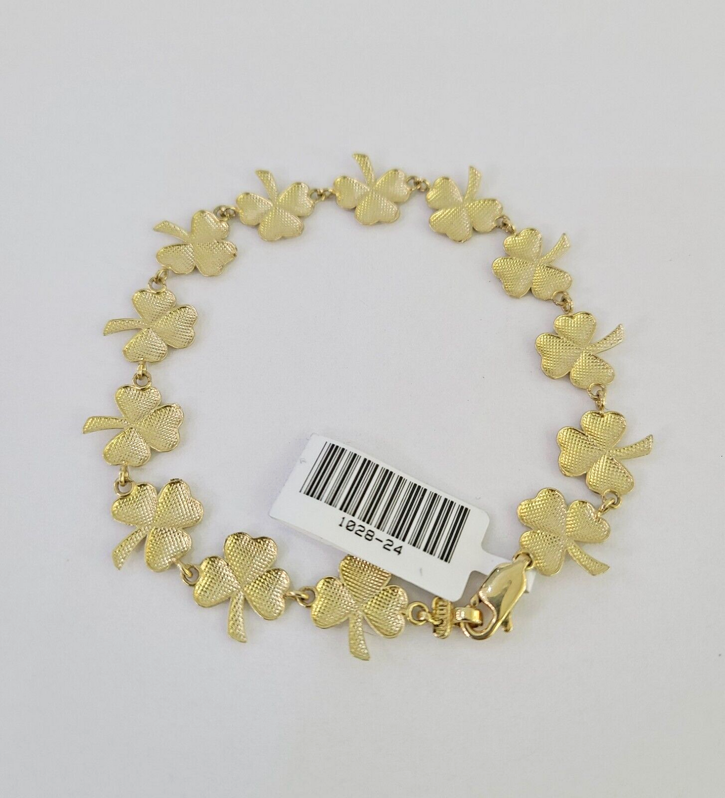10k Yellow Gold Leaf Irish Bracelet 9mm 7" Women Ladies Real Genuine