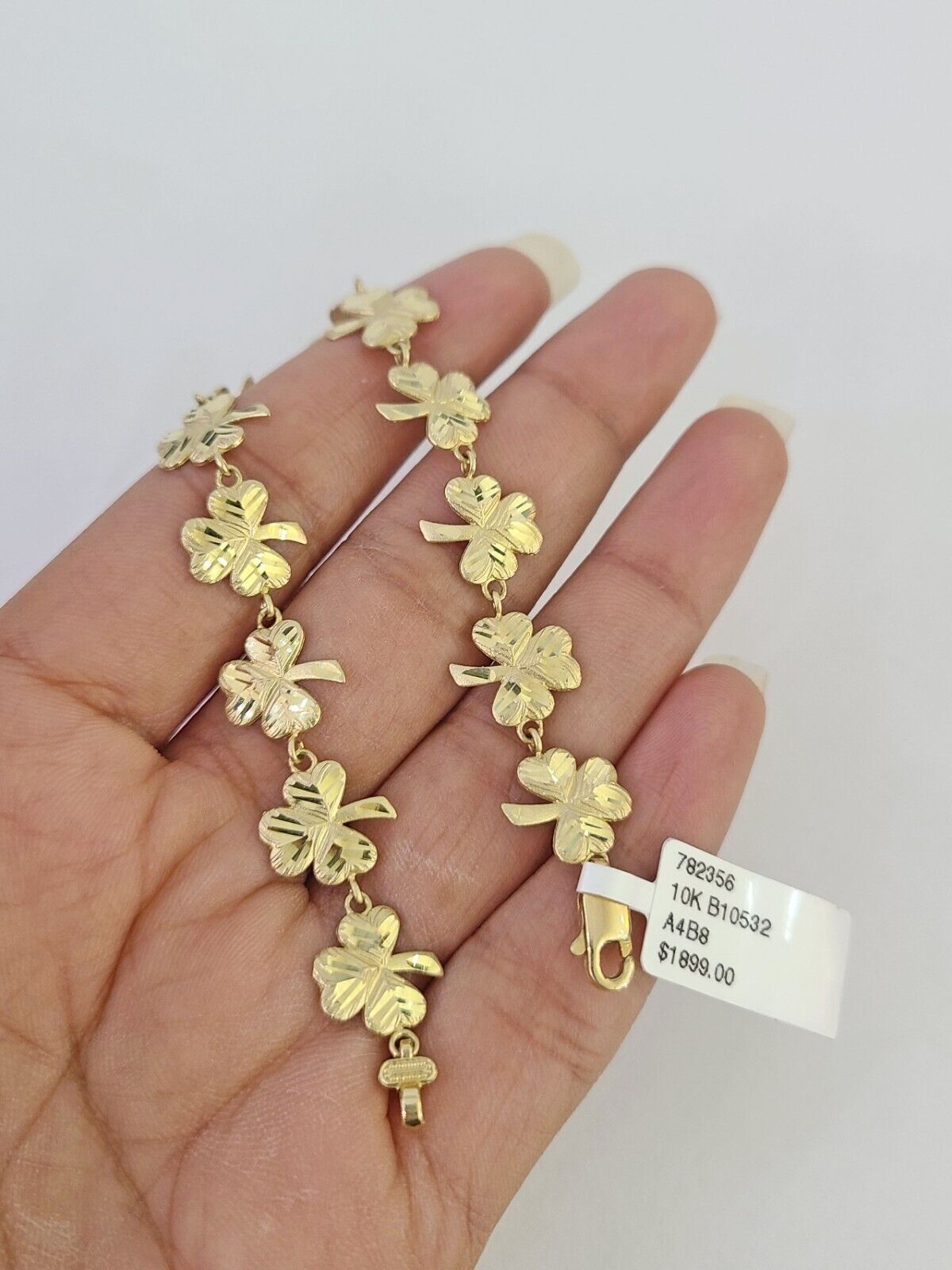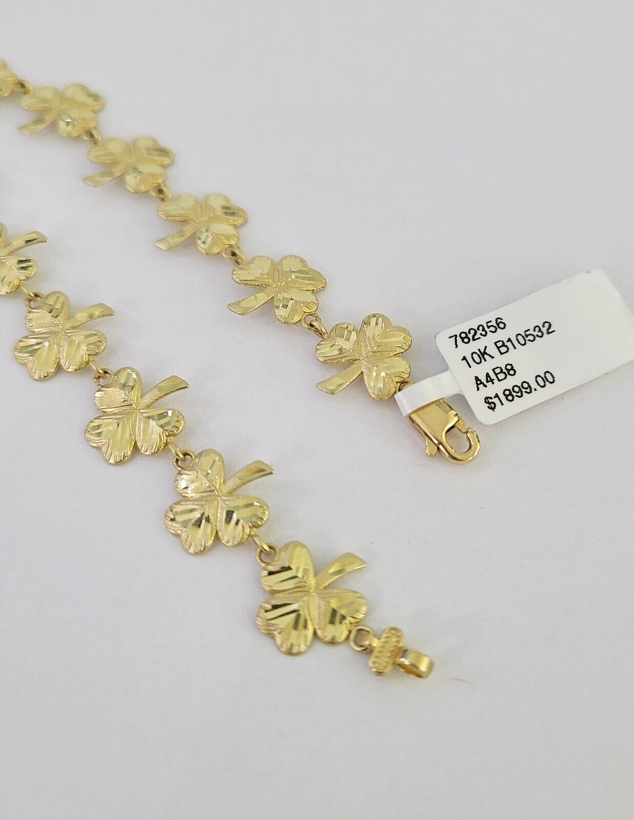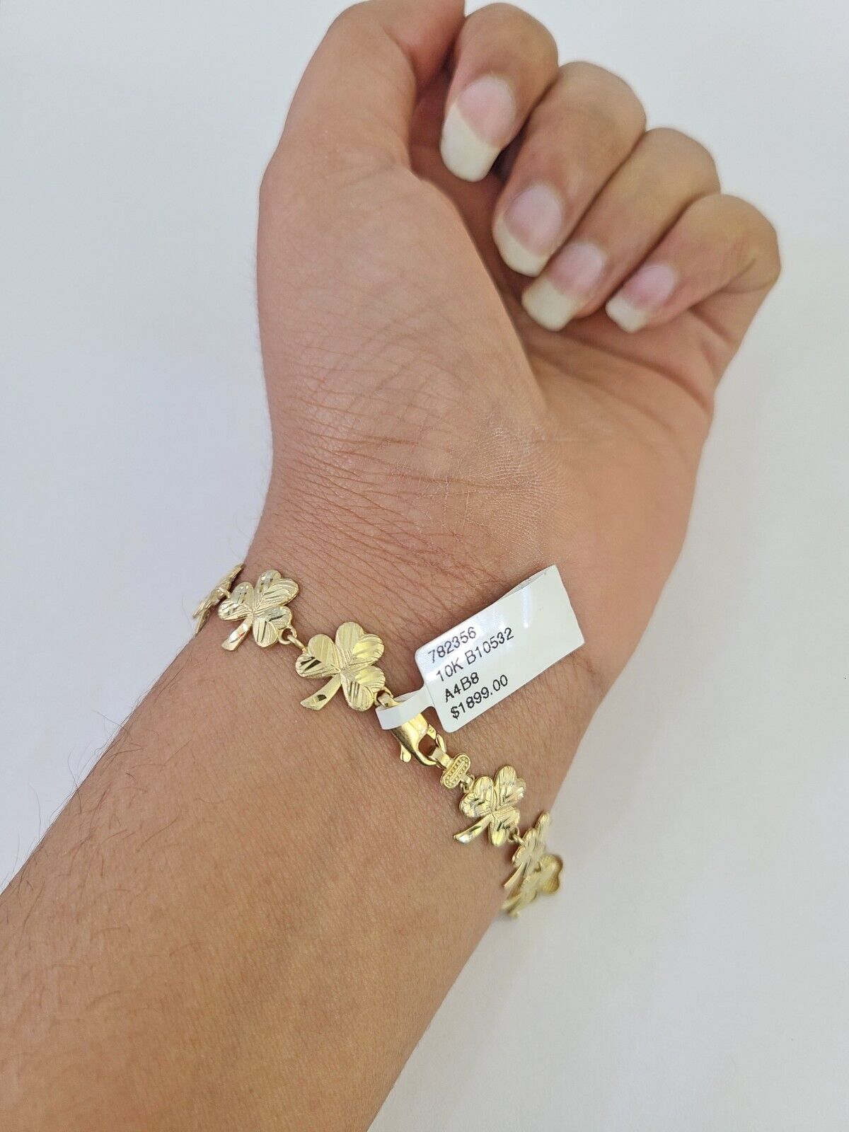 10k Yellow Gold Leaf Irish Bracelet 9mm 7" Women Ladies Real Genuine