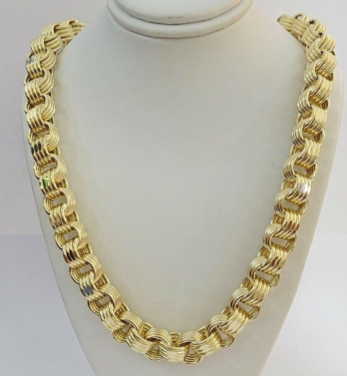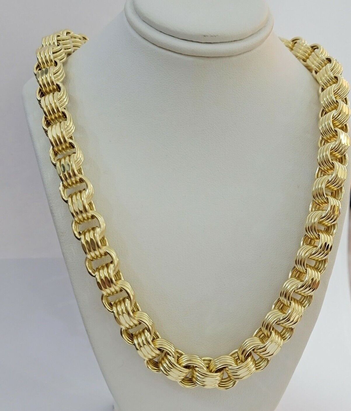 12.5mm Byzantine Box chain 28 Inch Real 10k Yellow Gold Men Thick Necklace