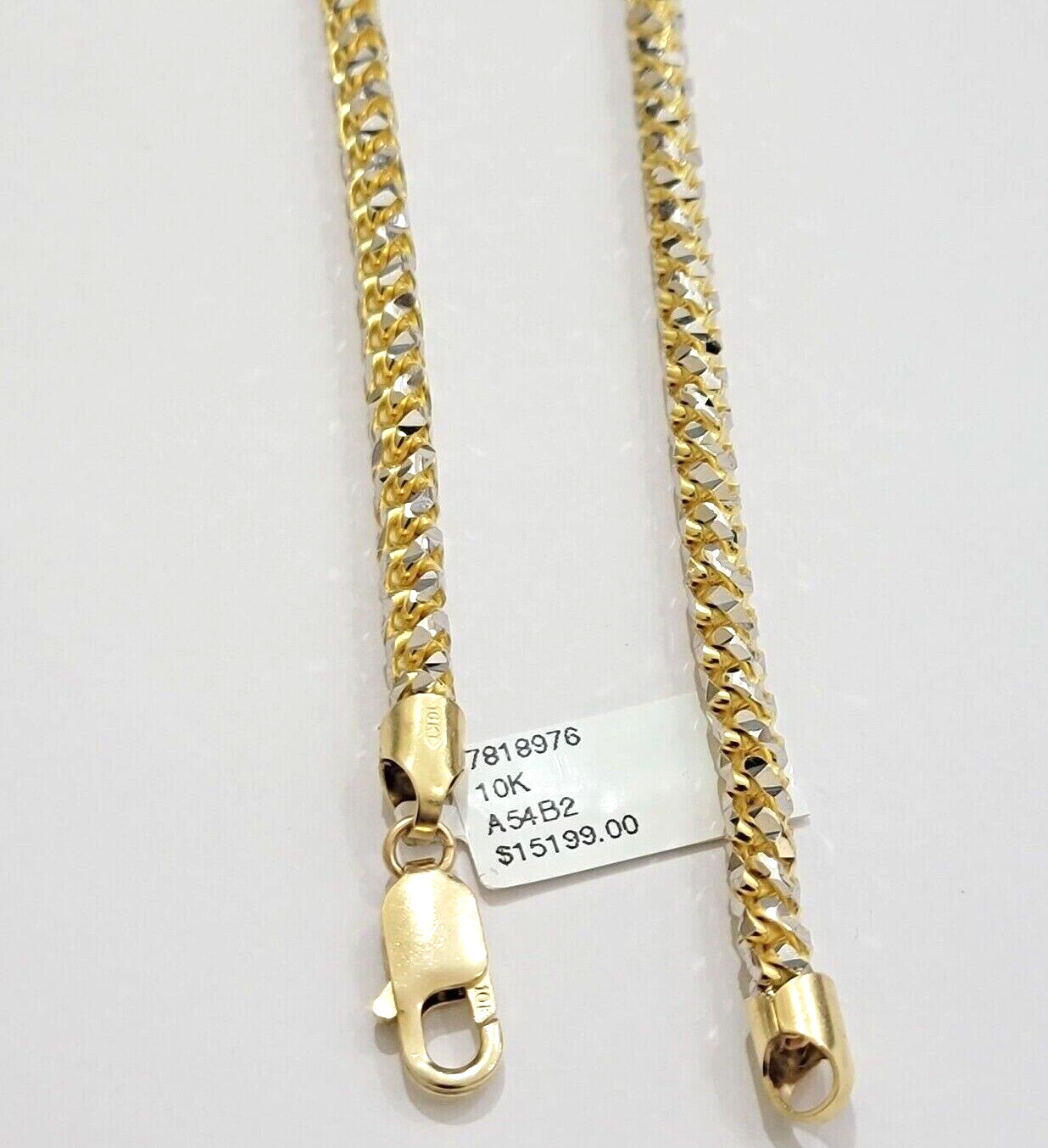 Real 10k Gold Solid Palm Chain Necklace Diamond cut 4mm 22" 10kt Genuine