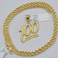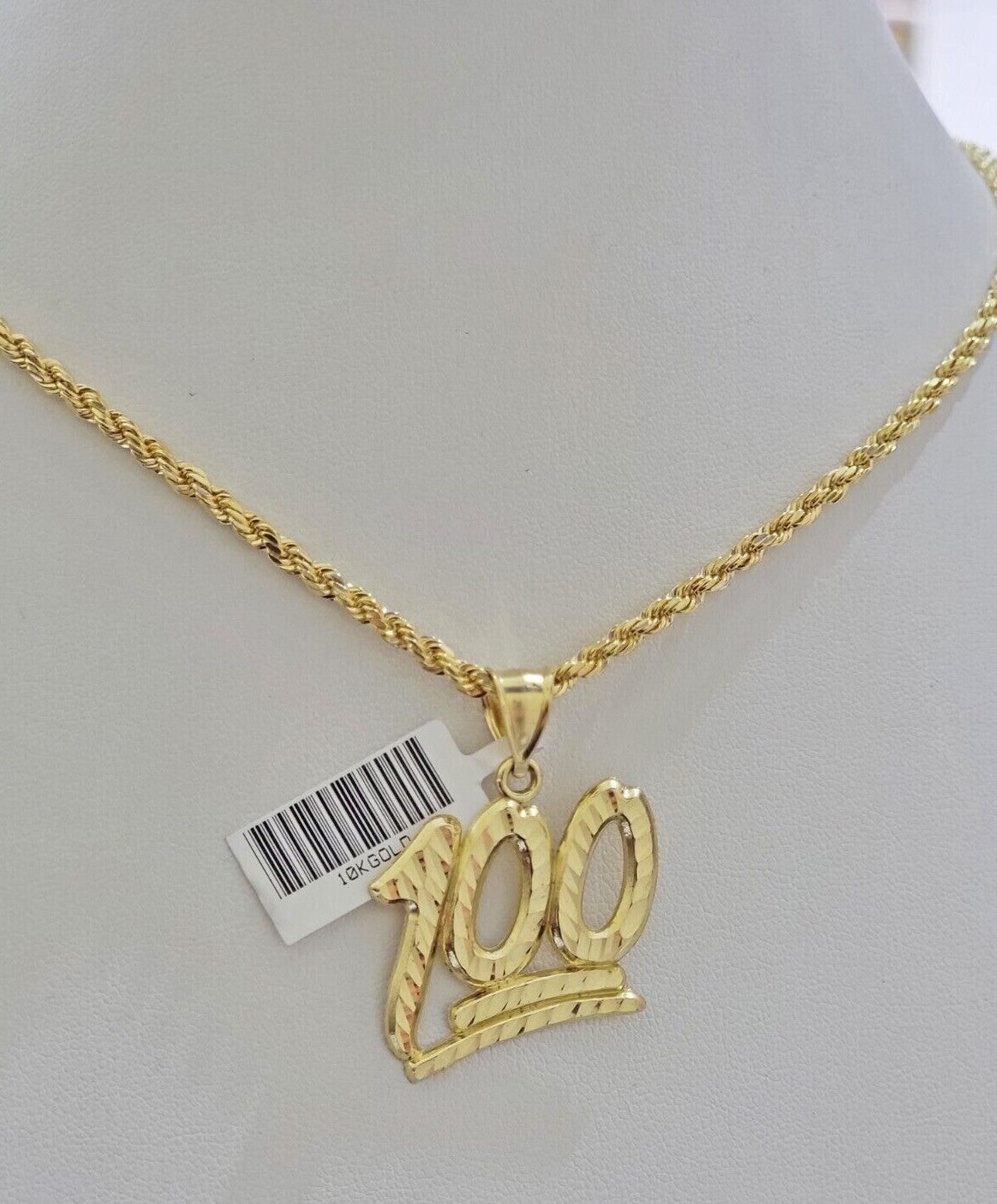 10k Yellow Gold Rope Chain 100 Charm Pendant Set 18"-28 Inch 3mm Necklace REAL