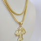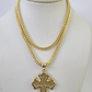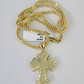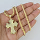 10kt Yellow Gold Franco Chain Necklace Jesus Cross Charm Pendant 3mm 18-28 inches