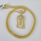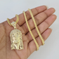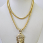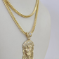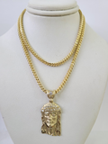 10kt Yellow Gold Franco Chain Necklace Jesus Head Charm Pendant 3mm 18-28 inches