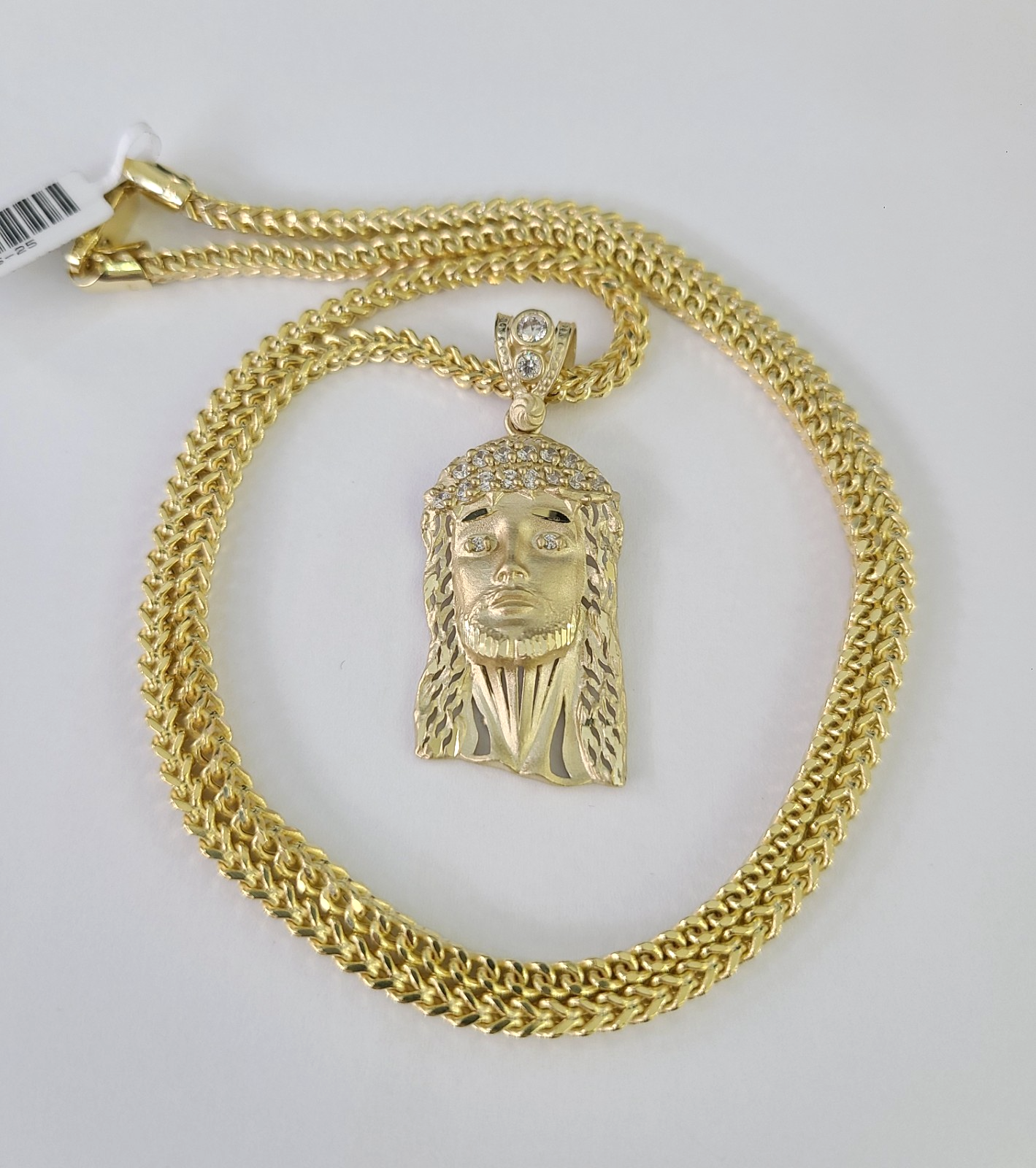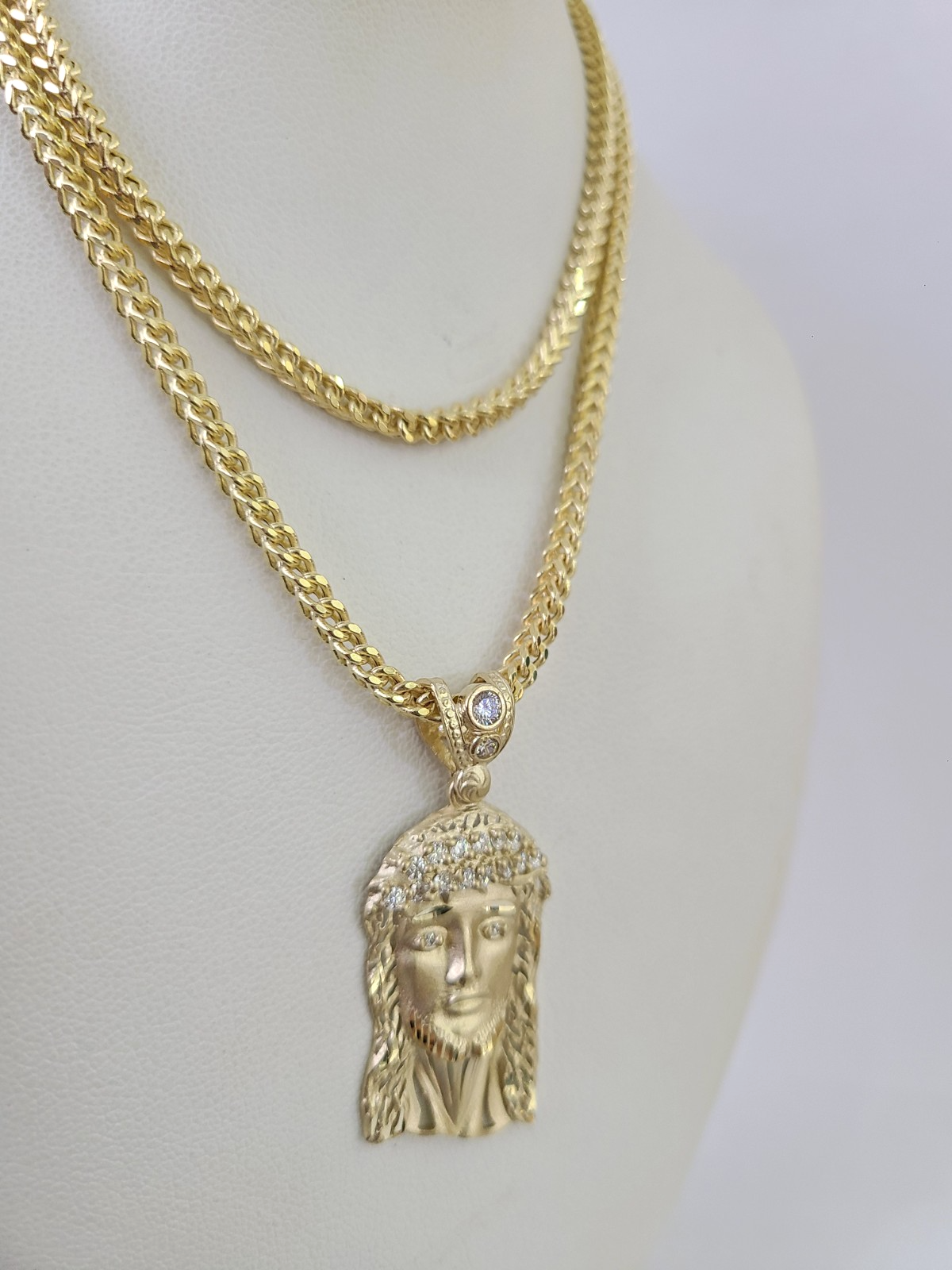 10kt Franco Chain Necklace Jesus Head Charm Pendant 3mm 18-28 Inches Yellow Gold