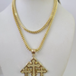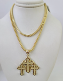 10kt Yellow Gold Franco Chain Necklace Jesus Triple Cross Charm Pendant 3mm 18-28 inches