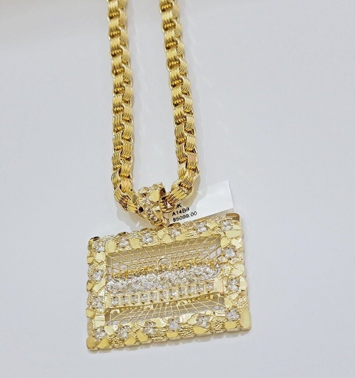 10kt Gold Box Byzantine Necklace Last Supper Charm Pendant 6mm Chain 26'' Inches
