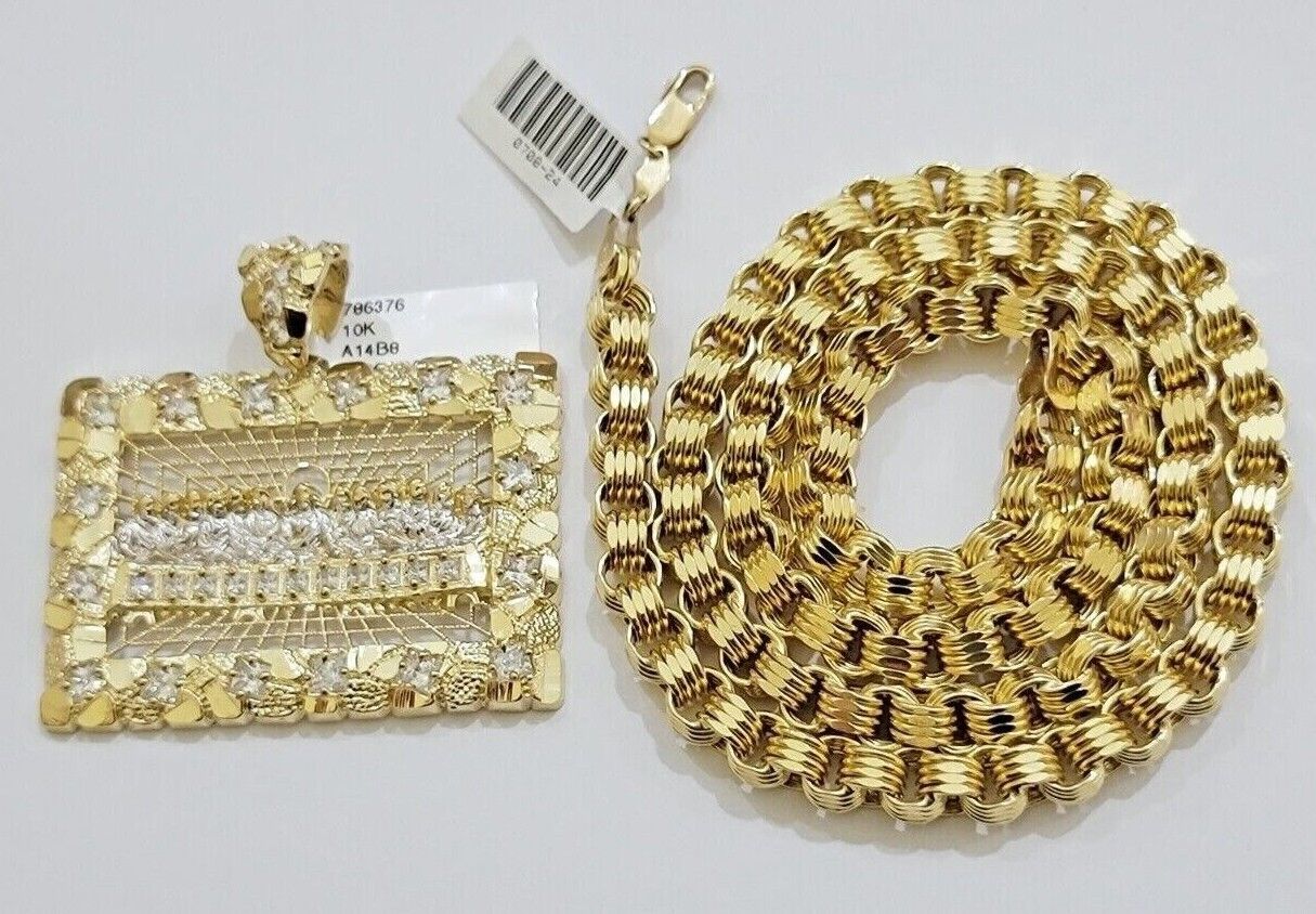 Genuine 10k Yellow Gold Box Byzantine Chain 26 Inch Inch 6mm Necklace With Last Supper Charm design as a SET. The Various length of the Chain are 26 Inch . If you are not happy with the way it looks or feels, we do offer 30 - Days FREE Return shipping. Contact us for more information.
