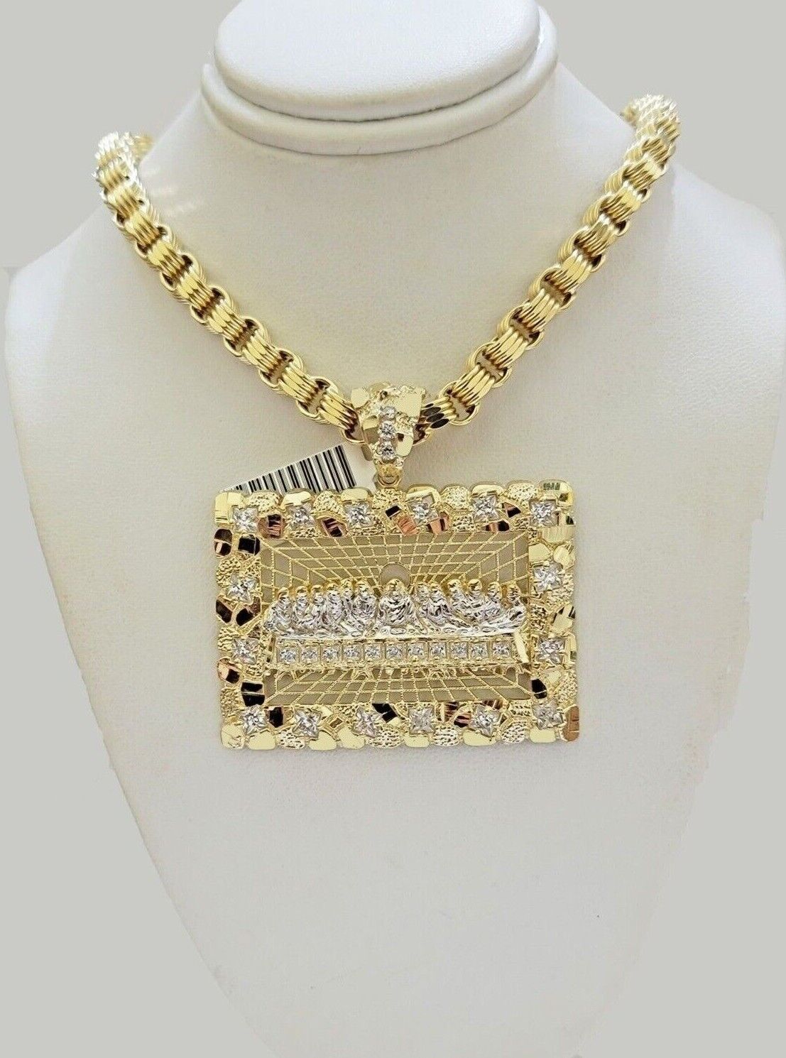 Genuine 10k Yellow Gold Box Byzantine Chain 22 Inch Inch 6mm Necklace With Last Supper Charm design as a SET. The Various length of the Chain are 22 Inch . If you are not happy with the way it looks or feels, we do offer 30 - Days FREE Return shipping. Contact us for more information.