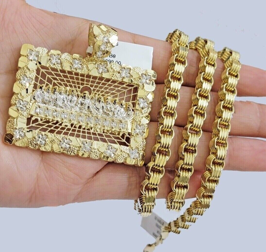 Genuine 10k Yellow Gold Box Byzantine Chain 28 Inch Inch 6mm Necklace With Last Supper Charm design as a SET. The Various length of the Chain are 28 Inch . If you are not happy with the way it looks or feels, we do offer 30 - Days FREE Return shipping. Contact us for more information.