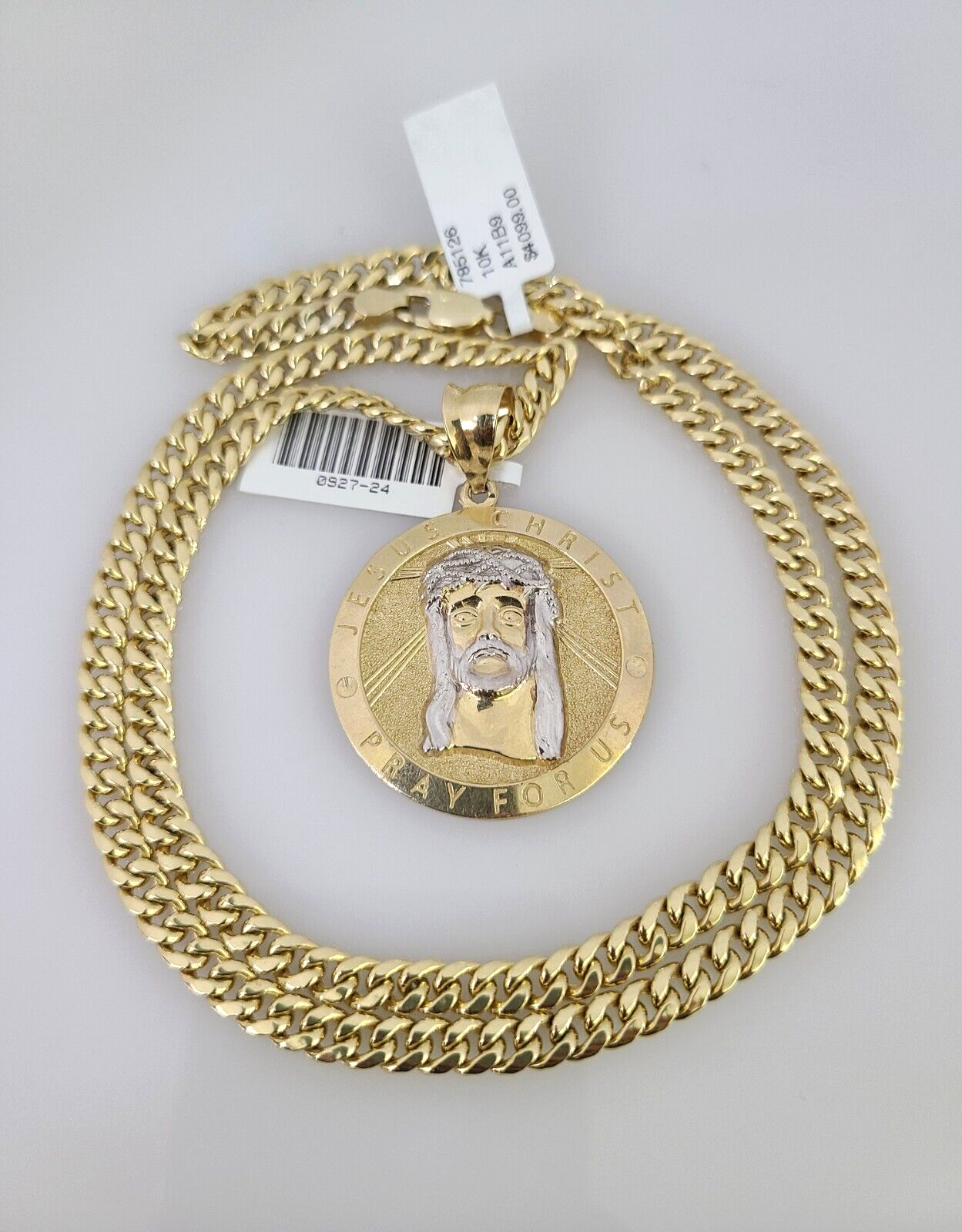 10kt Gold Miami Cuban Chain Jesus Christ Charm Pendant 5mm 18-28 Inch Necklace SALE