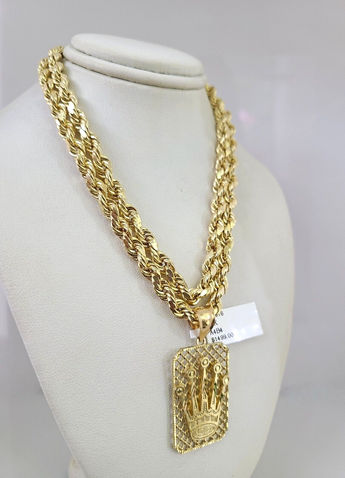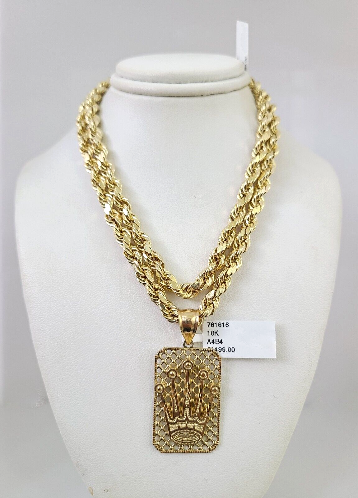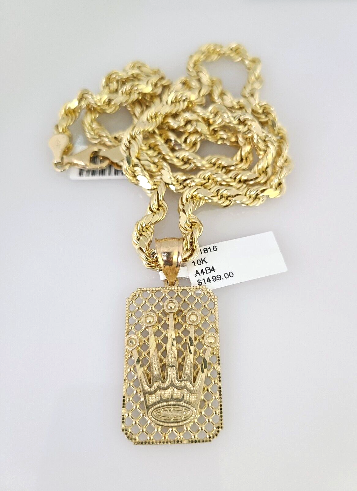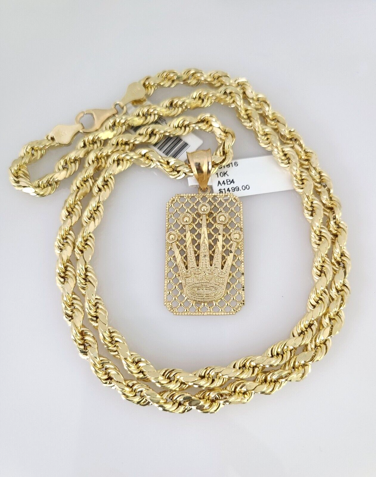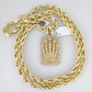 10kt Gold Rope Chain Crown Charm Set 18"-30'' Inch 6mm Necklace Pendant