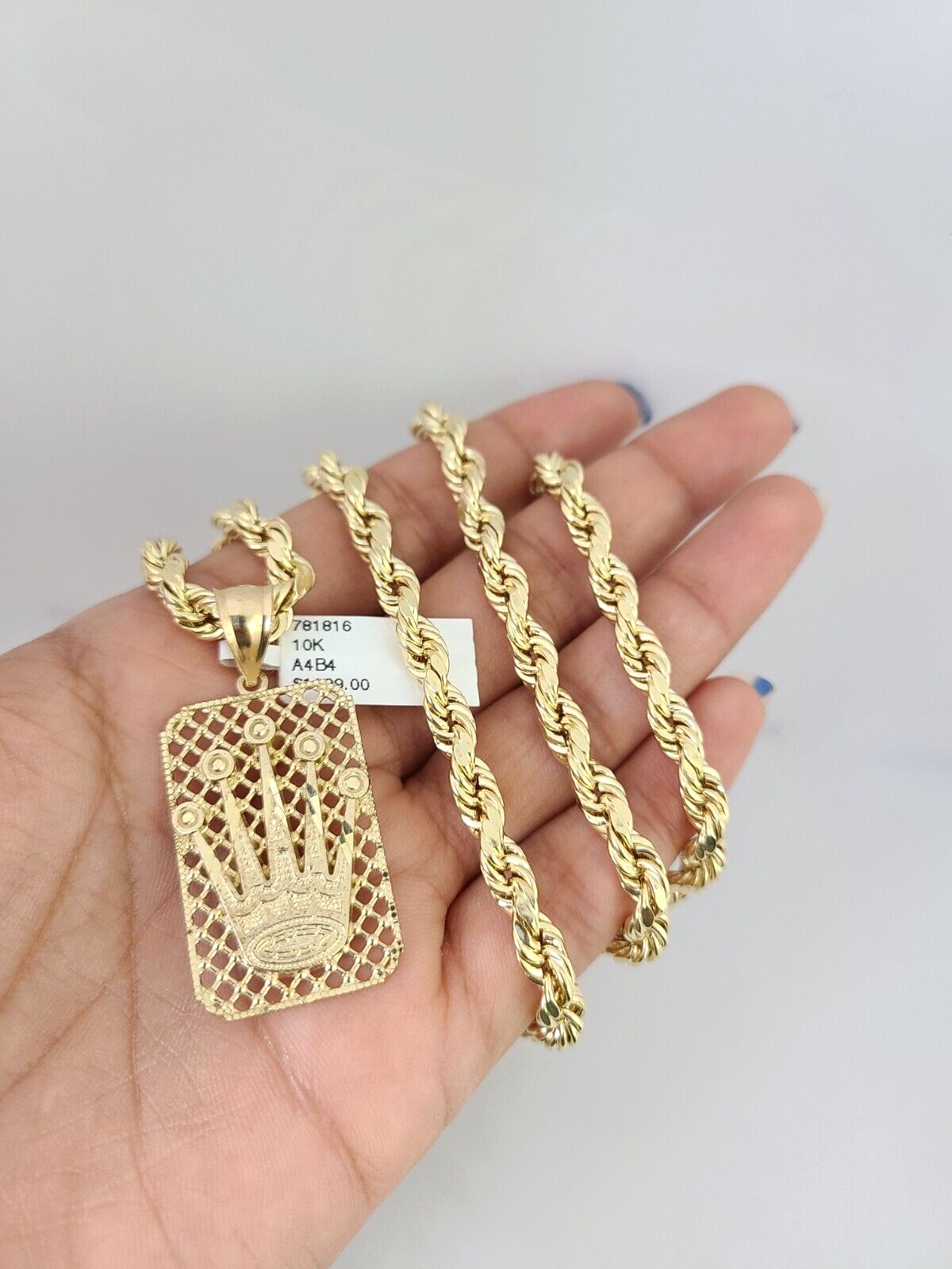 Genuine 10k Yellow Gold Rope Chain 18-30 Inch 6mm Necklace with Crown Charm design as a SET. The Various length of the Chain are 18-30 Inches. If you are not happy with the way it looks or feels, we do offer 30 - Days FREE Return shipping. Contact us for more information.