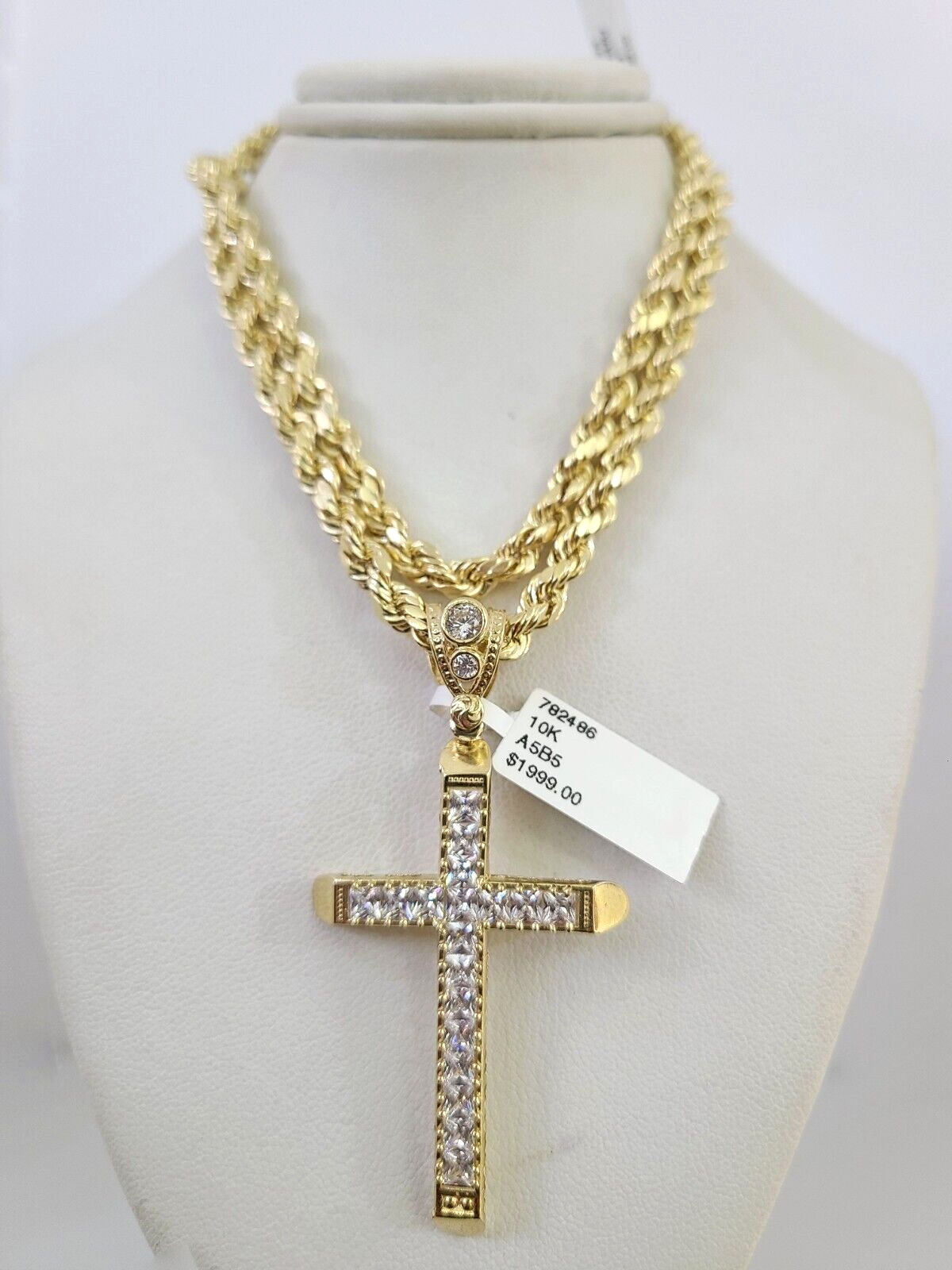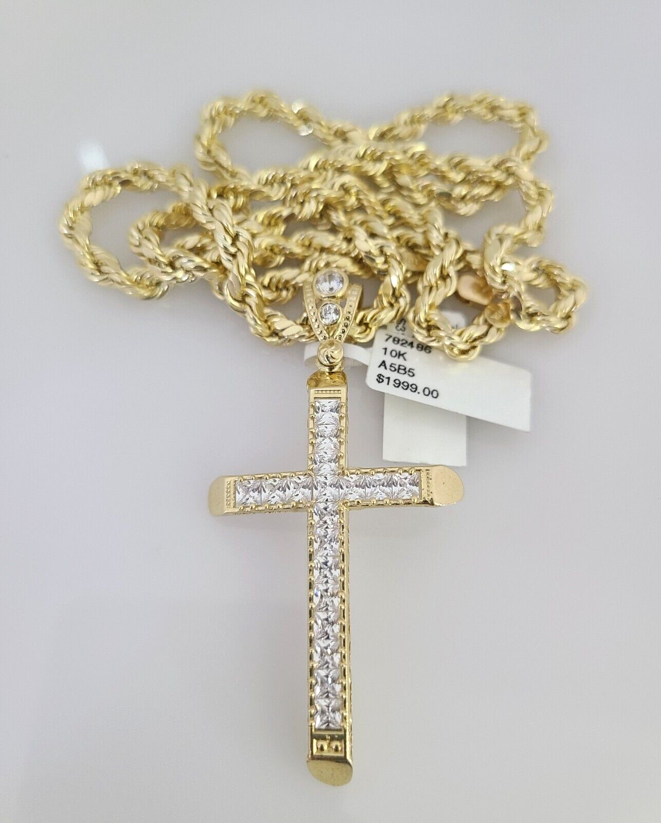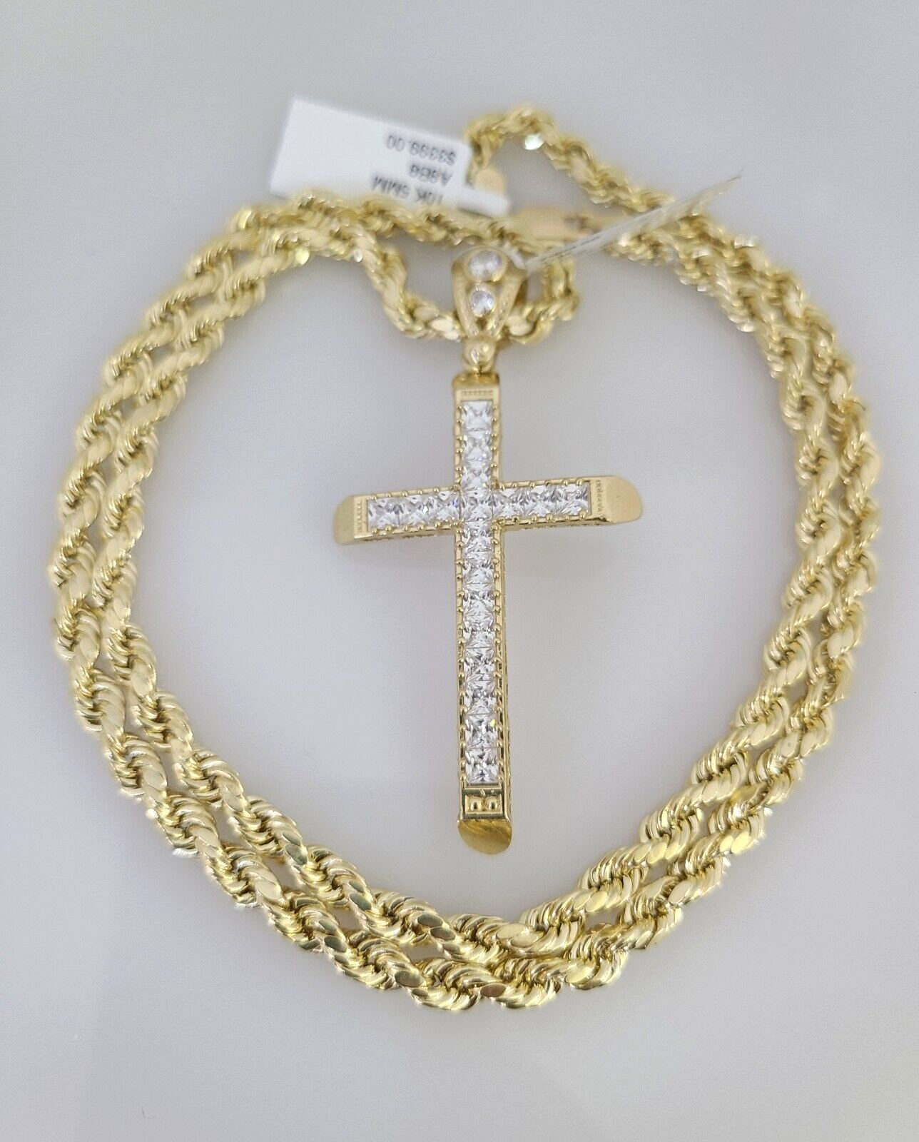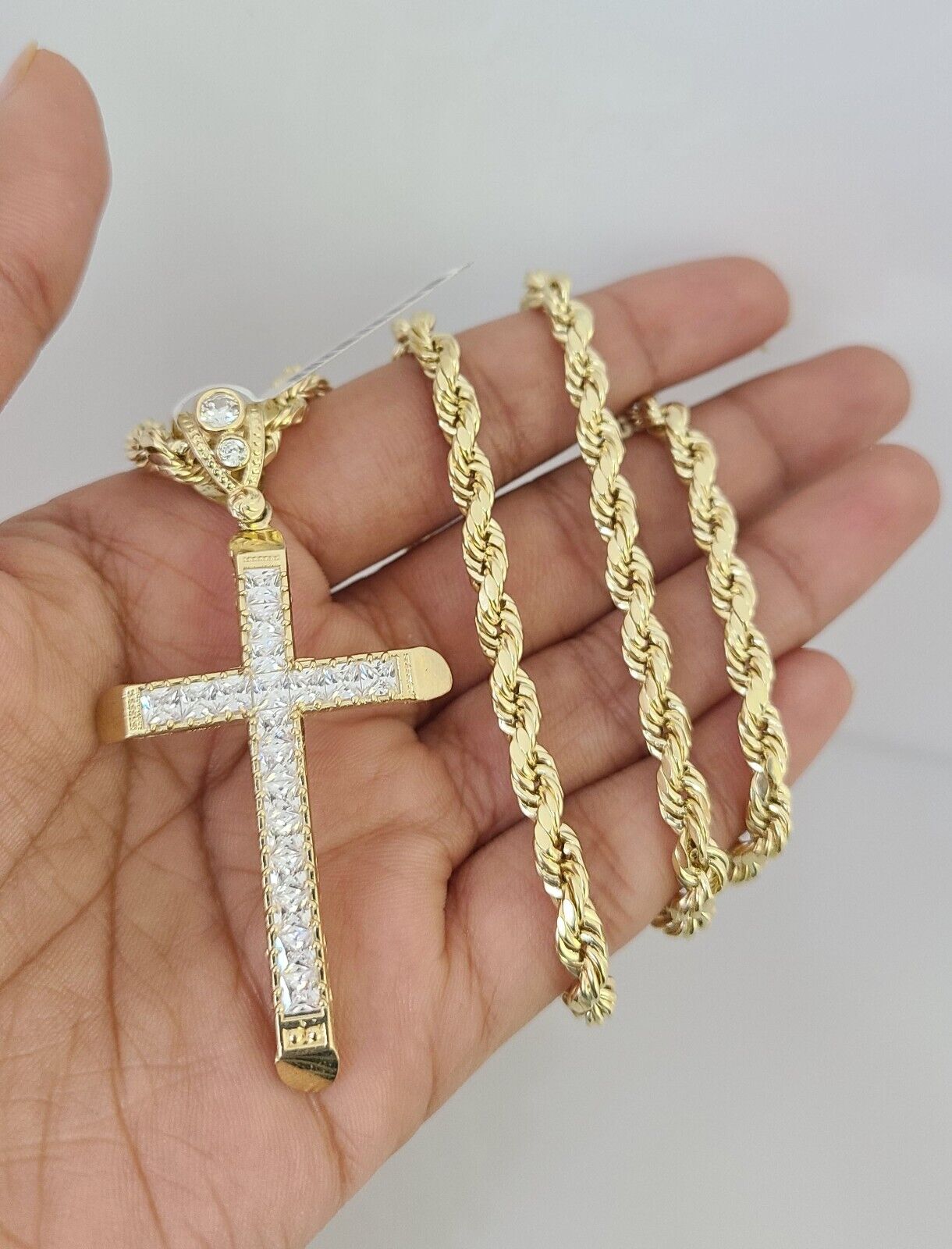 Genuine 10k Yellow Gold Rope Chain 18-30 Inch 5mm Necklace With Jesus Cross Charm design as a SET. The Various length of the Chain are 18-30 Inches . If you are not happy with the way it looks or feels, we do offer 30 - Days FREE Return shipping. Contact us for more information.