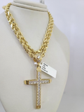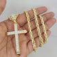 10kt Gold Rope Chain Jesus Cross Charm Set 18"-30'' Inch 5mm Necklace Pendant