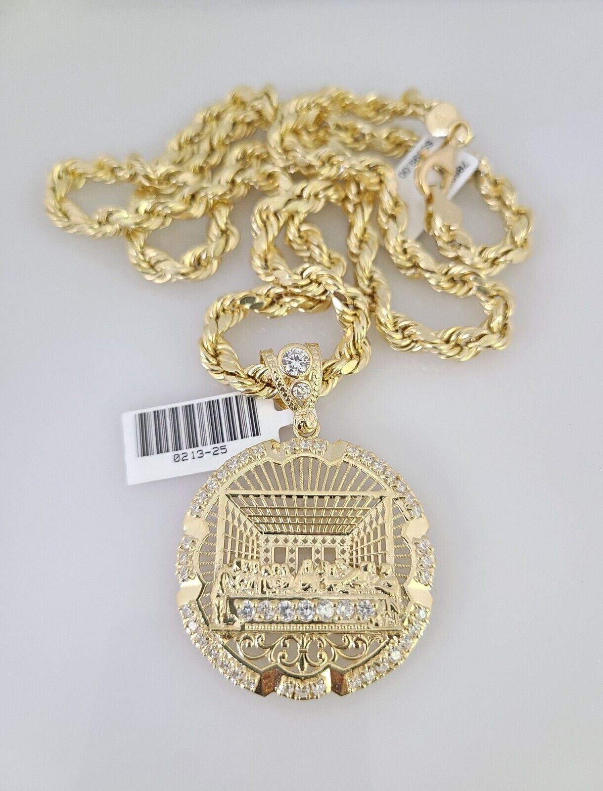 10kt Gold Rope Chain Last Supper Charm Set 18"-30'' Inch 6mm Necklace Pendant