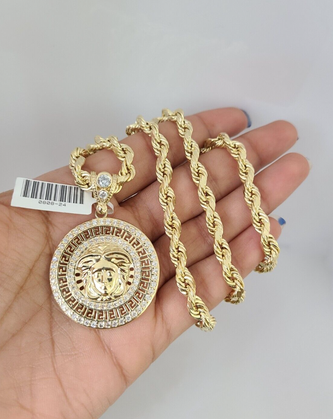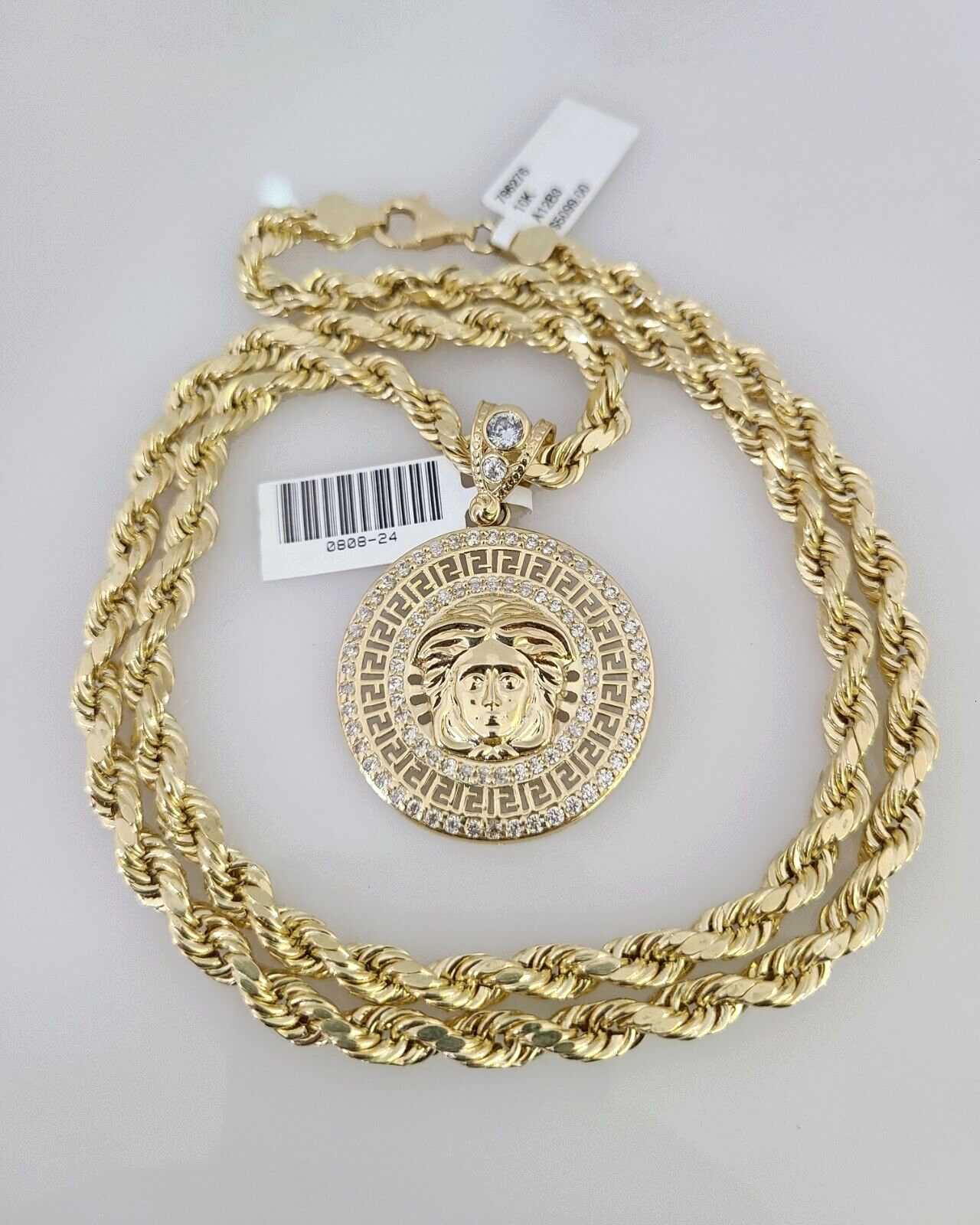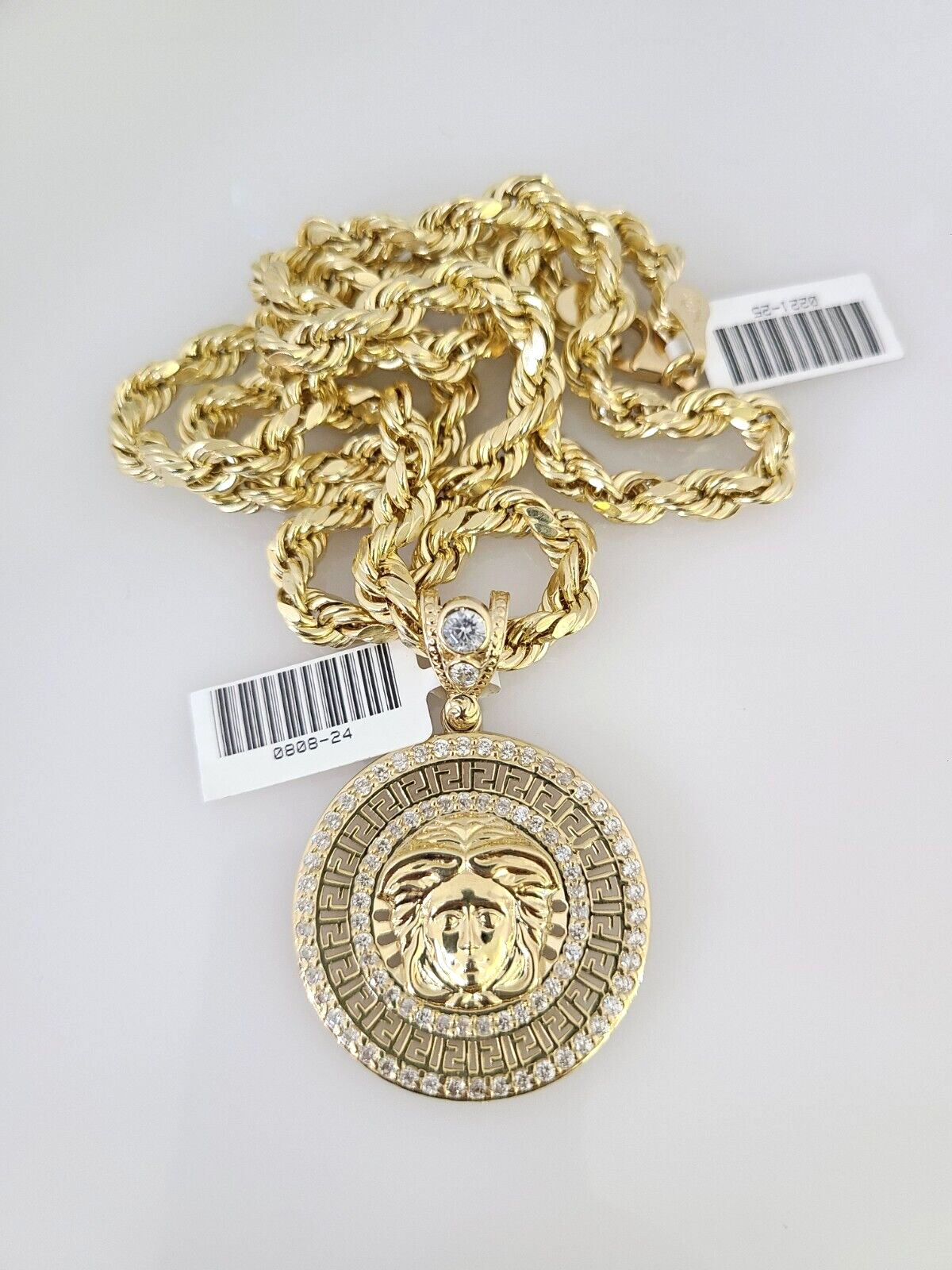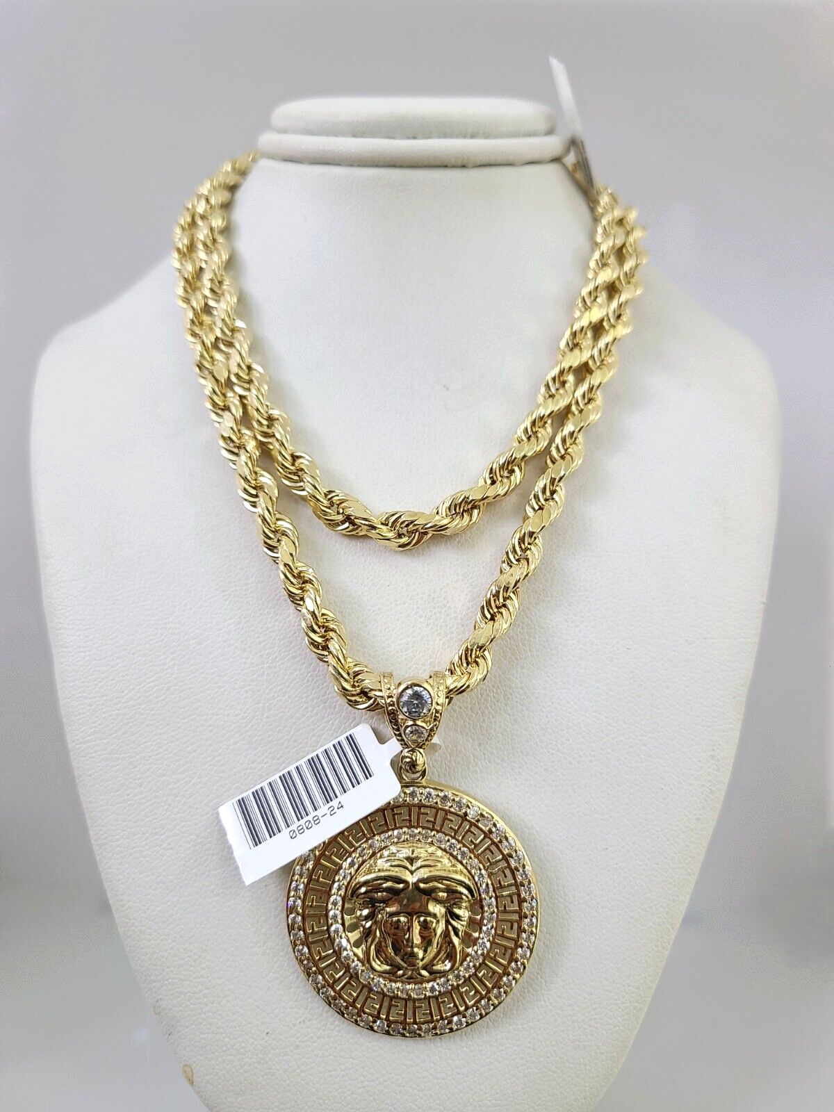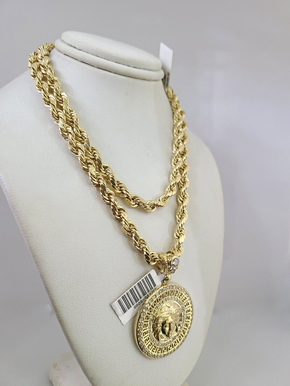10kt Gold Rope Chain Medusa Head Charm Set 18"-30'' Inch 6mm Necklace Pendant