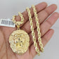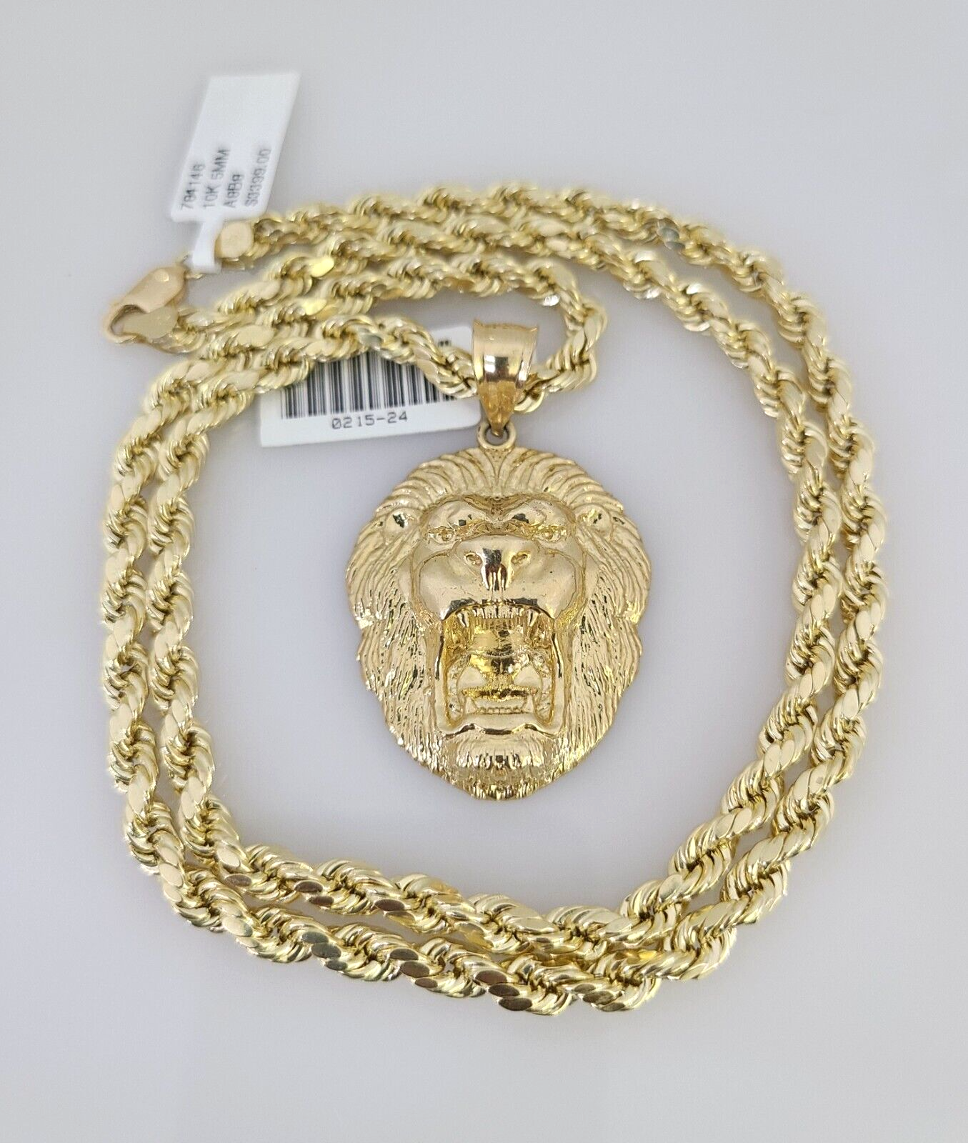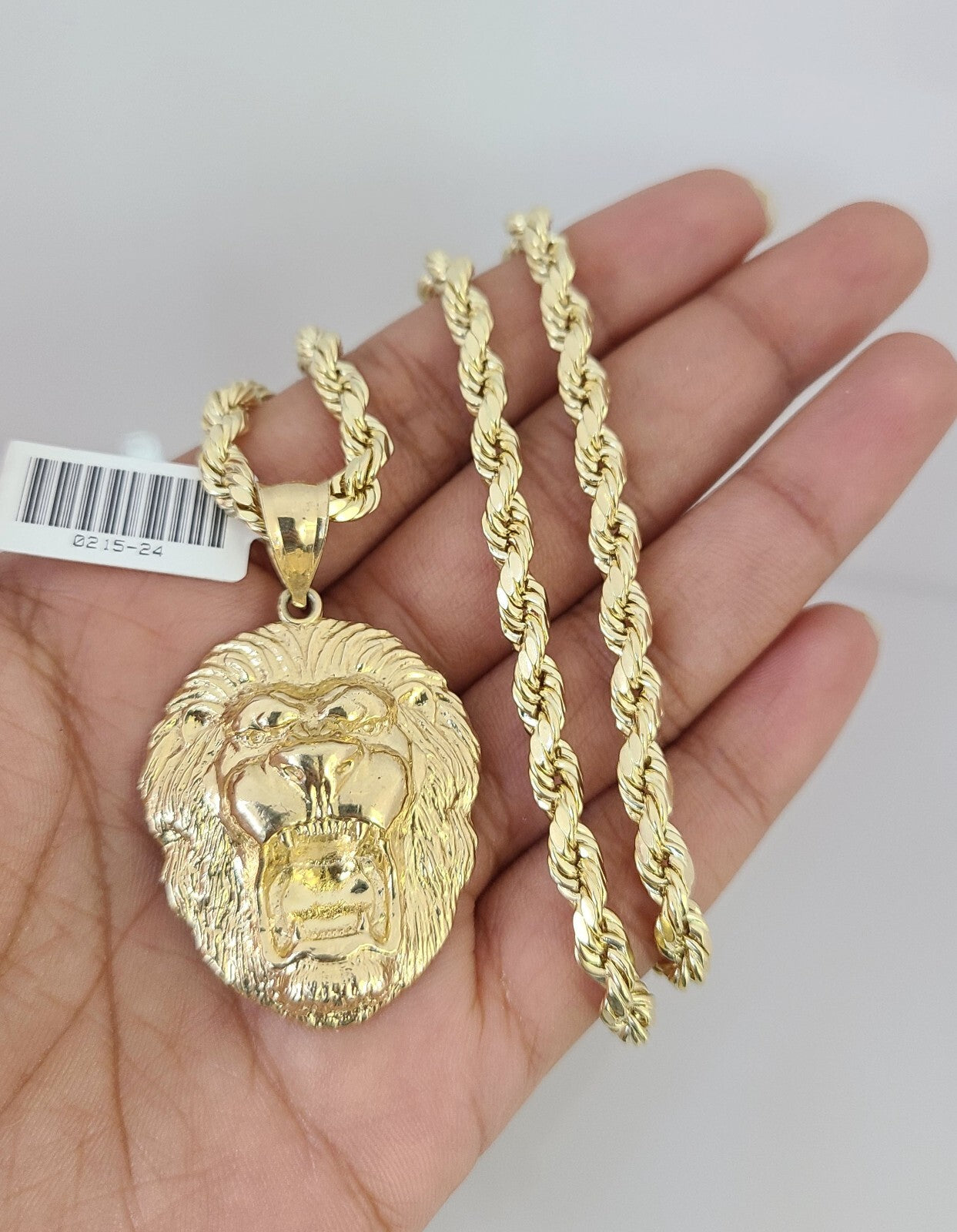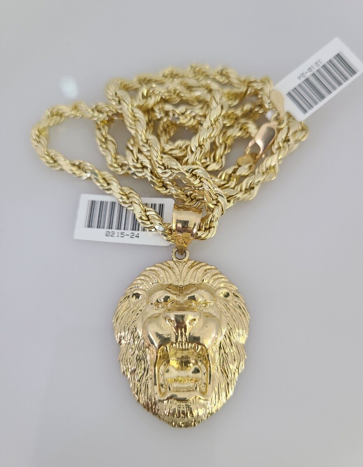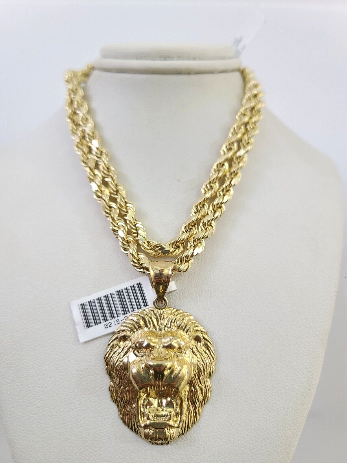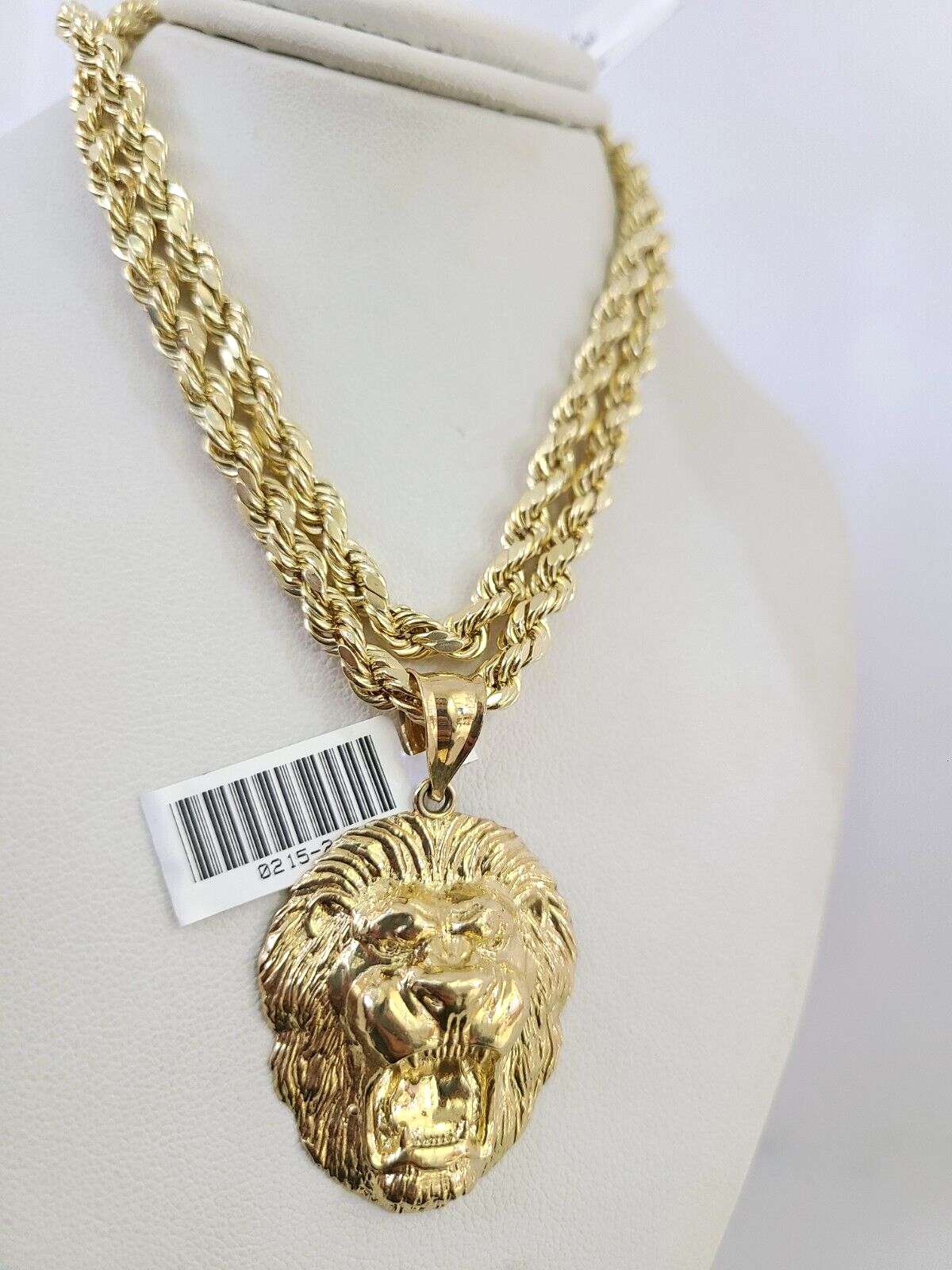 10kt Gold Rope Chain Roaring Lion Pendant Charm Set 18"-30'' Inch 5mm Necklace