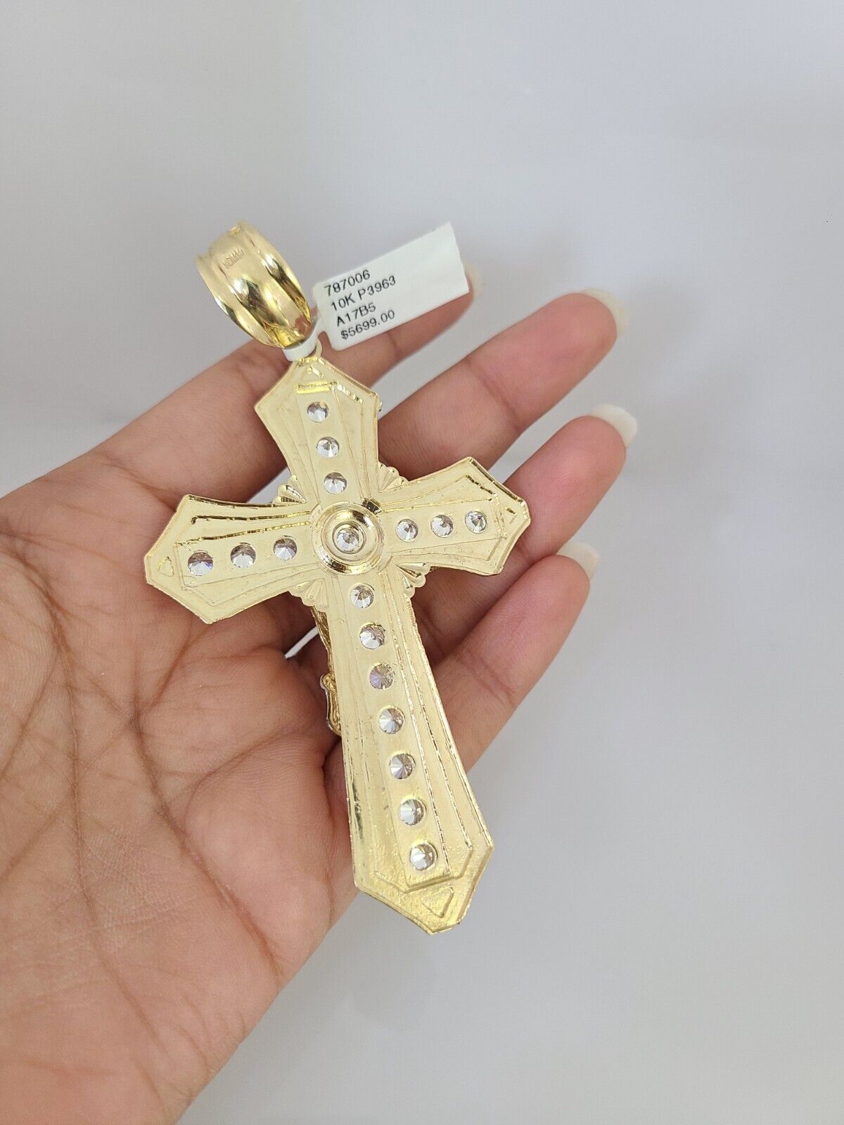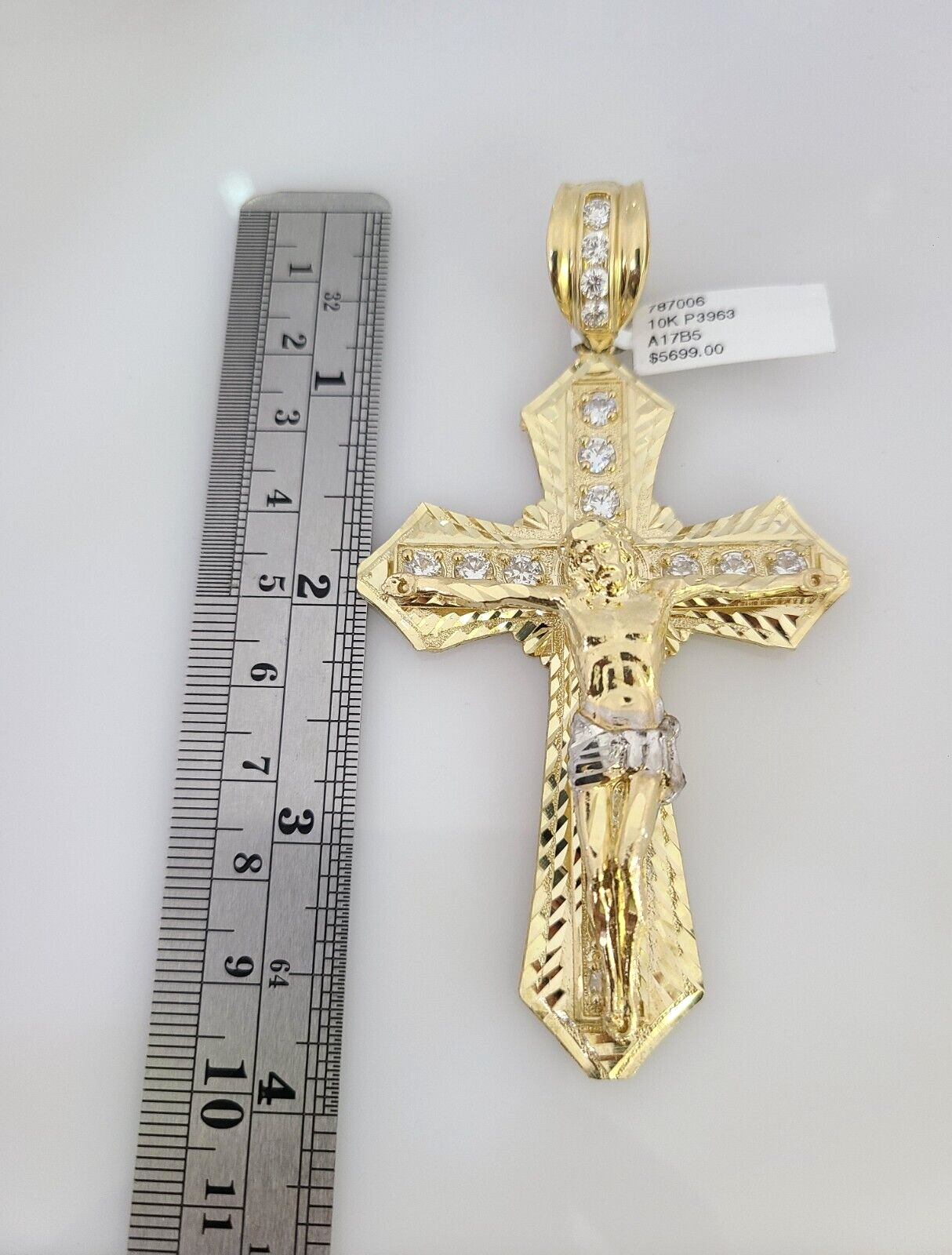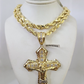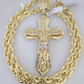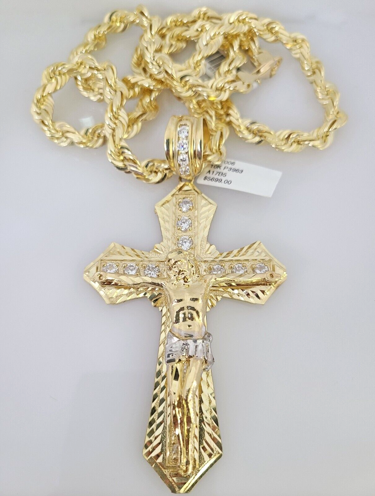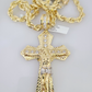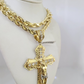 10kt Gold Solid Rope Chain Jesus Cross Charm Set 18"-30'' Inch 7mm Pendant